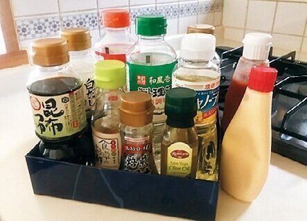 1人だと大容量の調味料や油は使い切れず、賞味期限切れしてしまうことも。「100円ショップ限定サイズは、適量で収納しやすく、持ち運びもラクと、今の私にぴったり!」。