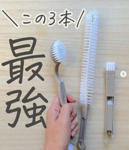 あの隅の汚れが気になるけど、普段の掃除用具だと届かない…。そんなときは、3COINSの「隅洗いブラシ3本セット」330円がおすすめ。