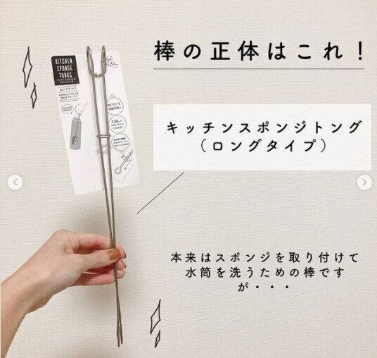 スポンジを挟んで、水筒の奥など手の届きにくいところをきれいに洗える「キッチンスポンジトング」。