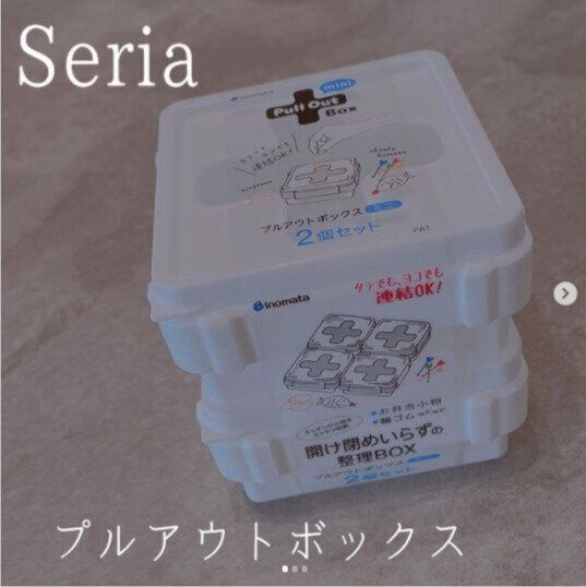 セリアで人気のプルアウトボックス。縦横連結することもできます。排水口ネットやお弁当小物、輪ゴムなどこまかい物の収納にぴったりです。