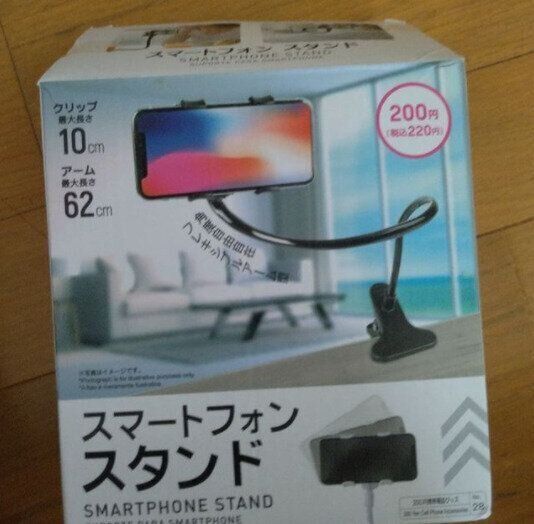 クリップではさみ、スマホを固定することができるダイソーのスマートフォンスタンド。アームを自由自在に曲げることができるので、どんな態勢でも動画などが見やすいというのがメリットです。こちらは220円の商品。お手頃価格が嬉しいですね。