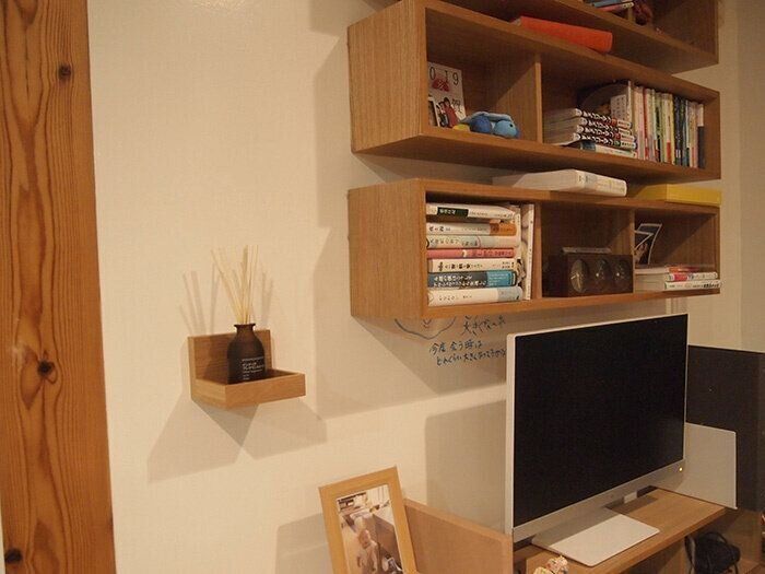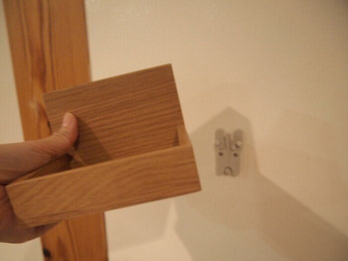 慣れているのもありますが、つけたピンに本体を差し込むだけなのでめちゃくちゃ簡単なんです。あっという間に壁につけられる家具、設置完了。