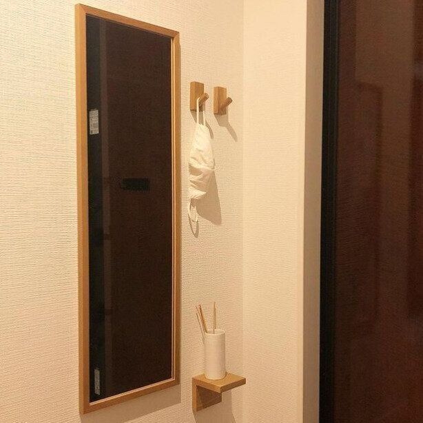 「これのおかげで玄関がお気に入りの場所になった」と好評なのが、「壁に付けられる家具シリーズ」(ミラー・中6,990円、フック890円・棚1,390円)になります。全部同じシリーズでそろえているので、統一感が出て見た目も洗練された印象になるでしょう。マスクの一時置き場にしたり、お気に入りのアロマディフューザーを置いたりして整えるとおしゃれな空間になるため、おすすめです。