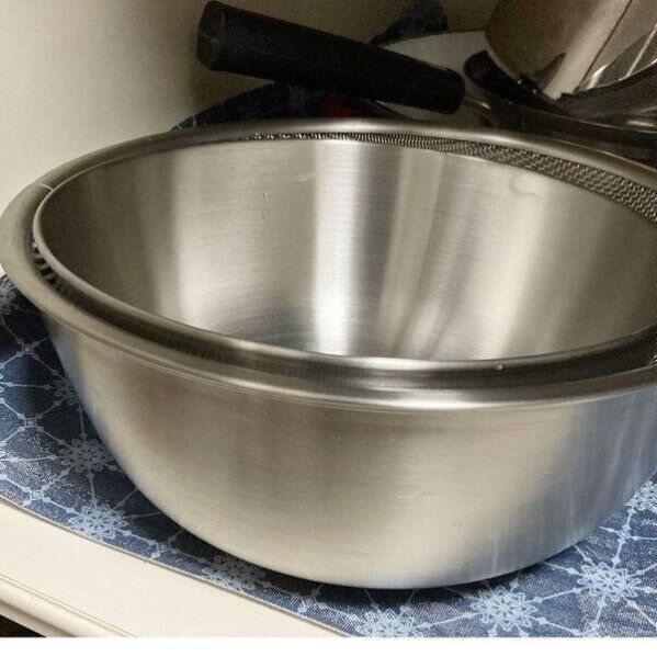 さまざまなカラーの調理器具などの色であふれて、ごちゃついた印象になりがちのシンク下。なんとなく野暮ったい印象を解消してくれるのが、「ステンレスボール」(Mサイズ590円・Lサイズ790円)になります。艶消しされた高級のあるステンレスで、同サイズならきれいに重なるため見た目もすっきりするでしょう。また、ボールにはメモリがついているので、スイーツづくりの計量にも役立ちます。同一シリーズのザルもあり、全部無印でそろえるのもおすすめです。使いやすい大きさと高級感で、キッチンが一気におしゃれなると評判のアイテムです。