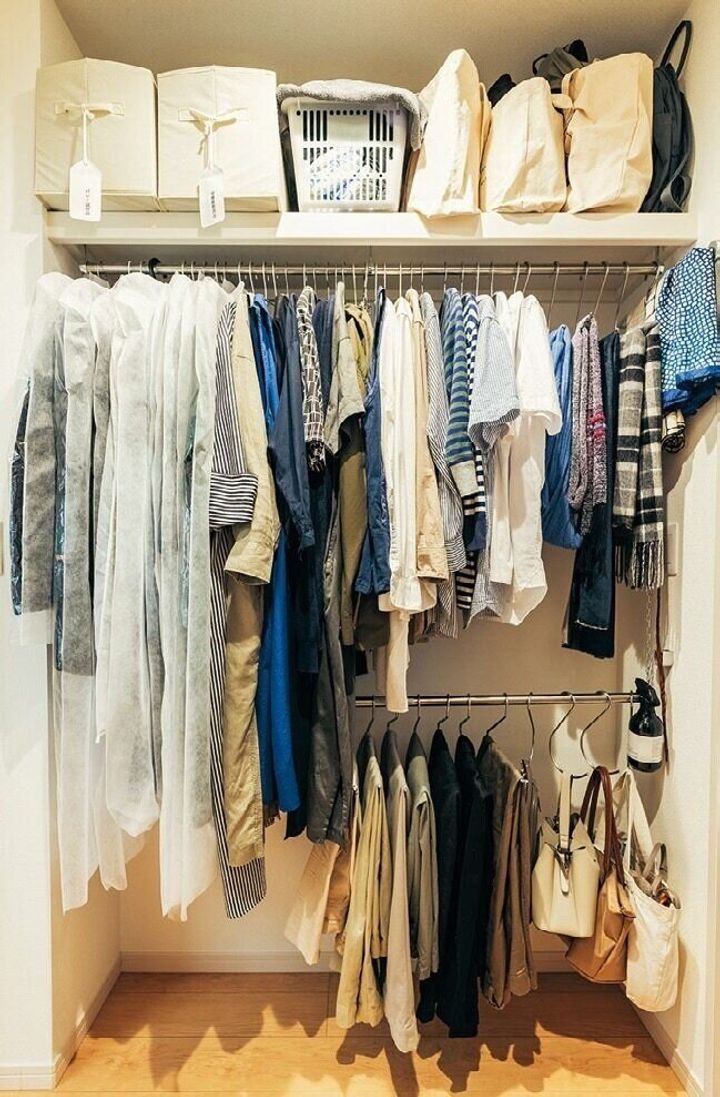 以前は衣装ケースに服を収納。「服を減らした分、衣装ケースも大量に処分。粗大ごみ代も負担になったので、今はクローゼットにつるすか、布製BOXに入る分だけにしています」。