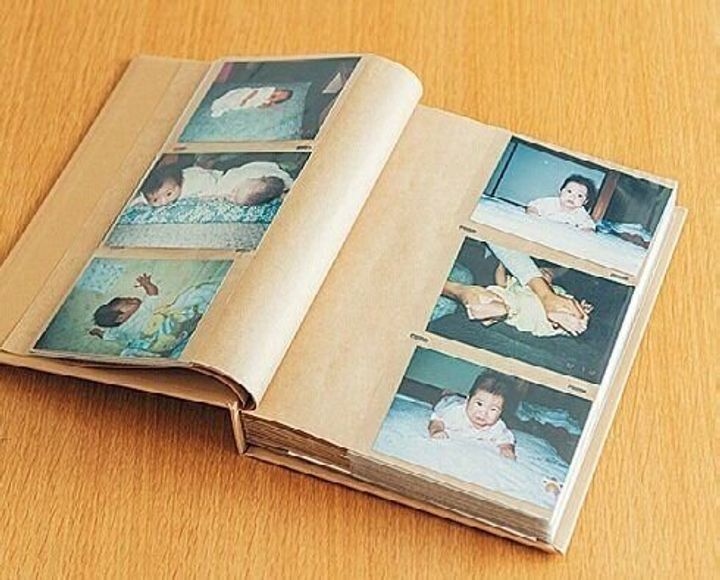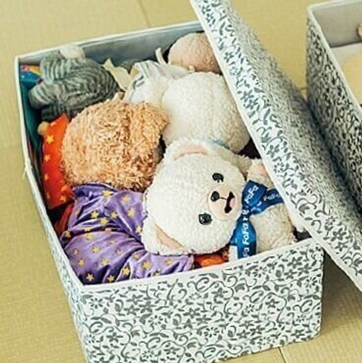 何冊もあった子どもの写真アルバムは、厳選して1冊に。「ぬいぐるみは、娘が自分の子どもに使わせたい物を選んでもらい、2箱分だけ保管しています」。