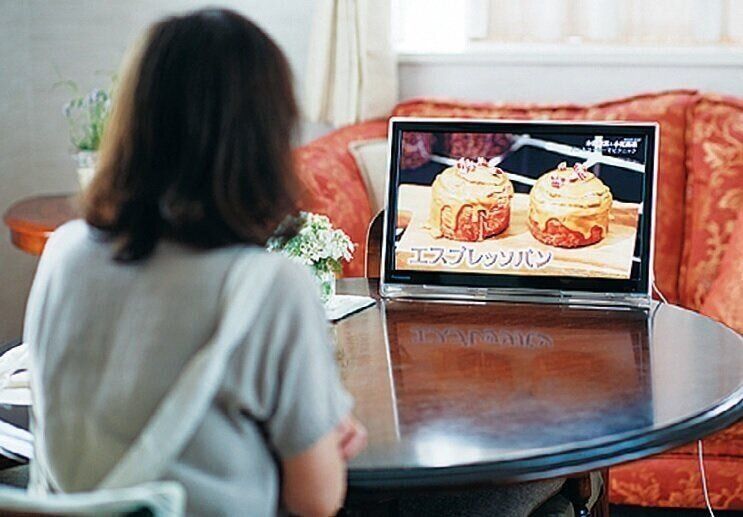 大きなテレビは、移動するのも大変だし、地震などで倒れる心配もありました。「1人だから小型でも充分。ポータブルタイプなら、家中どこでも見られるので快適です!」。