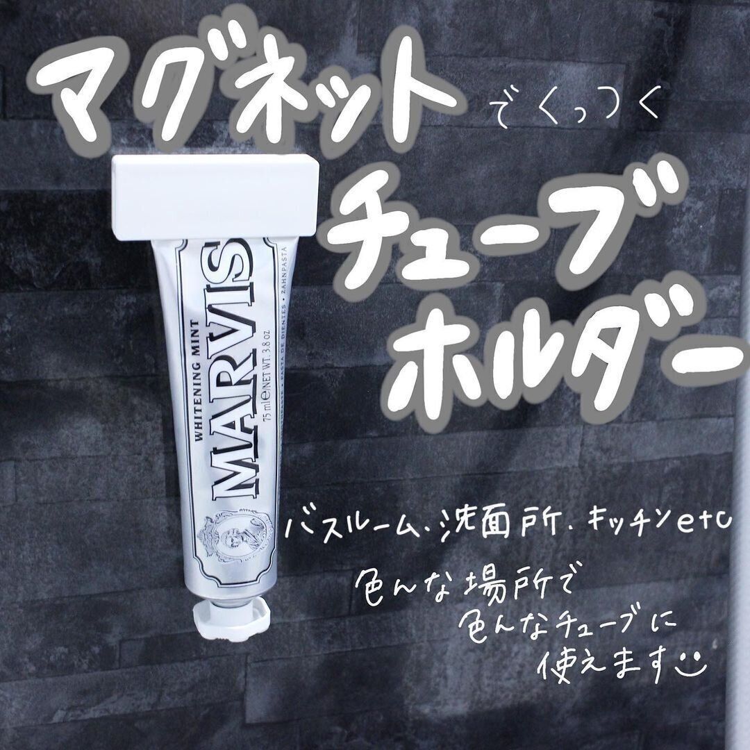 歯磨き粉や洗顔料、トリートメントなど、チューブに入ったものなら何でも使える便利なホルダーです。マグネットでペタッと貼りつけられるので、とても便利です。シンプルなホワイトカラーも、しっかりホールドできる安定感も人気の理由です。