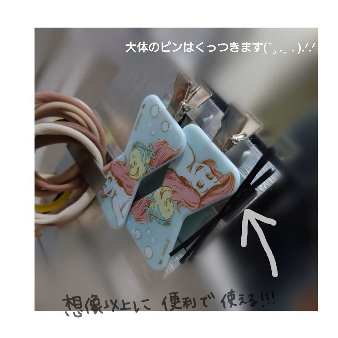 ヘアピンをしまう定位置が決まらず、いろいろな場所に置いてしまうというかたも多いのでは?そんな悩みを解決してくれるのが、マグネットになっているプレートにヘアピンをくっつけて収納するホルダー。貼ってはがせるテープで好きなところに設置できます。洗面台の側面や扉裏につけておくと、動線がスムーズなので、ストレスなくヘアピンをくっつけることができます。