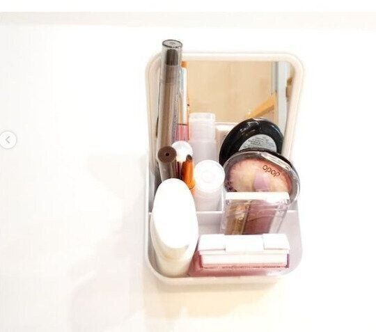 リビングでメイクするかたにおすすめのアイテムが「収納BOX付きミラー」です。ふたがミラーになっているこのBOXは、なかに仕切りがついているため、小分けも可能。普段使っているメイク道具もすっきりと収納できます。また、サイズも大きくないため、引き出しにも収まり、使うときだけ取り出せるので便利です。メイク道具以外にも、アクセサリーの収納などにもおすすめ。「期待以上!」と大好評のアイテムです。
