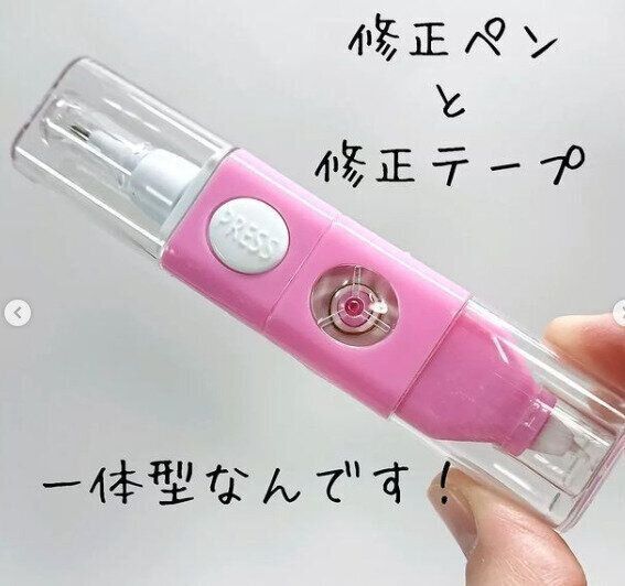 ついうっかり書き間違えてしまった文字を修正するのに、テープや修正ペンを使っているかたも多いことでしょう。けれども、2つをペンケースに入れるとなると、かなりかさばってくるのが難点ですよね。そこで、おすすめのものが「修正リキッド&テープ(使い切りタイプ)」です。これ1本に、両方ついているためとても便利。範囲が広いところは修正テープで、一部分ならリキッドで、と使い分けができます。さらに一体型なので、ペンケースに入れても場所とりません。技あり、かつコスパ最強アイテムです。