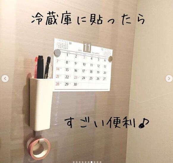 見た目からは想像つかない使い勝手のよいアイテムとなる「マグネットポケット」。ちょい置きに便利なアイテムで、冷蔵庫に貼ってペンをさしたり、マステをかけたりすれば、使いたいときにさっと取り出せるでしょう。また、玄関ドアにくっつけてハサミを入れたり、マスクをかけたりなどにも使えそうです。場所を取らないため、使う場所を選ばないのもナイス。まさに小技がきいたアイテムです。