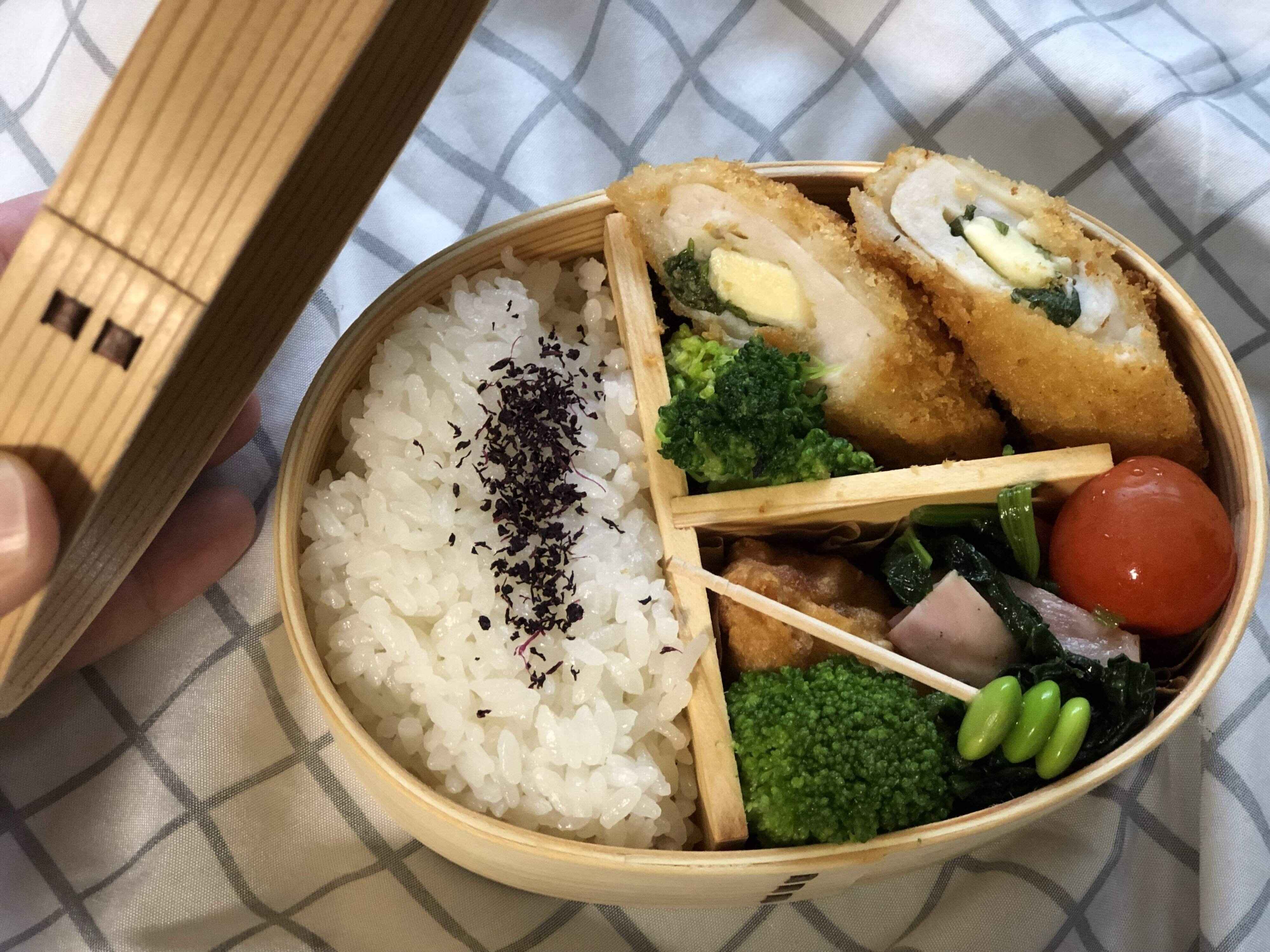 3COINSのまげわっぱのうれしいポイントのひとつが、中仕切り。これがあるおかげで、おかずが倒れにくくきれいに収まります。