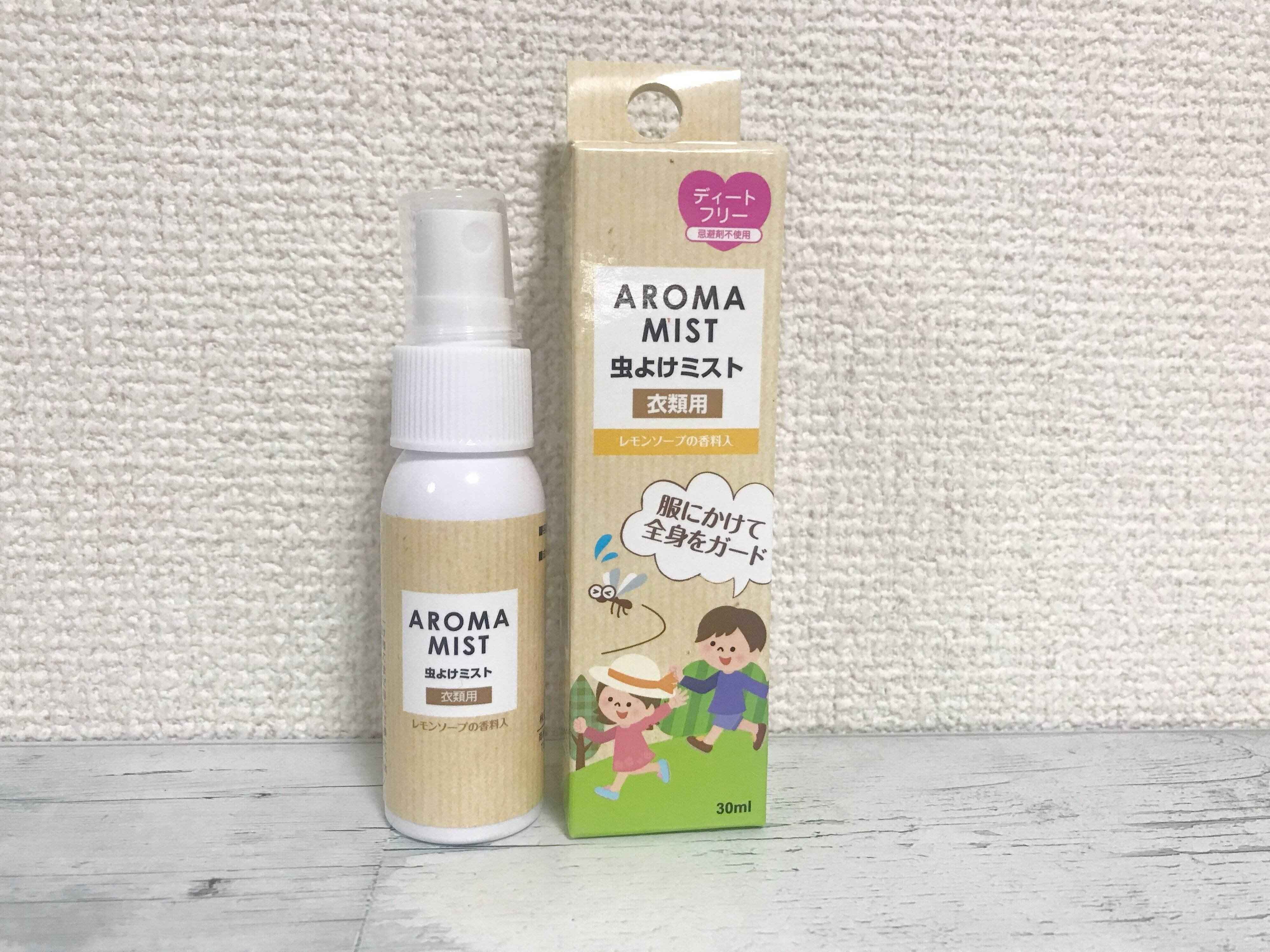 今回ご紹介するのは「AROMA MIST 虫よけミスト」(110円 税込)。内容量は30ml、レモンソープの香料入を購入しました。
