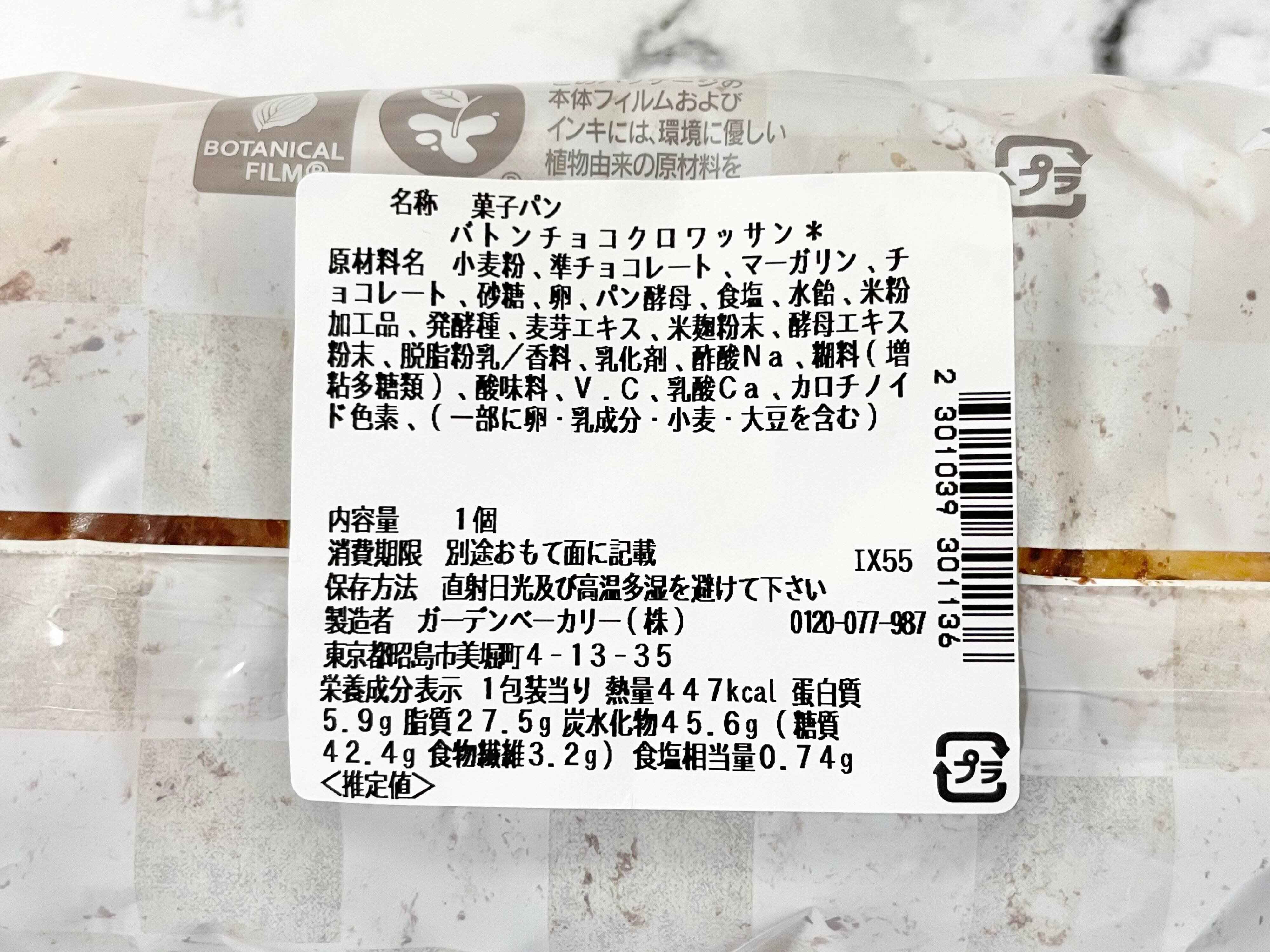 クロワッサンの中にチョコレートを巻き込み、さらにチョココーティングをしたスイーツパンです。"バトン"は焼き込み用の細長いチョコレートのことを指します。