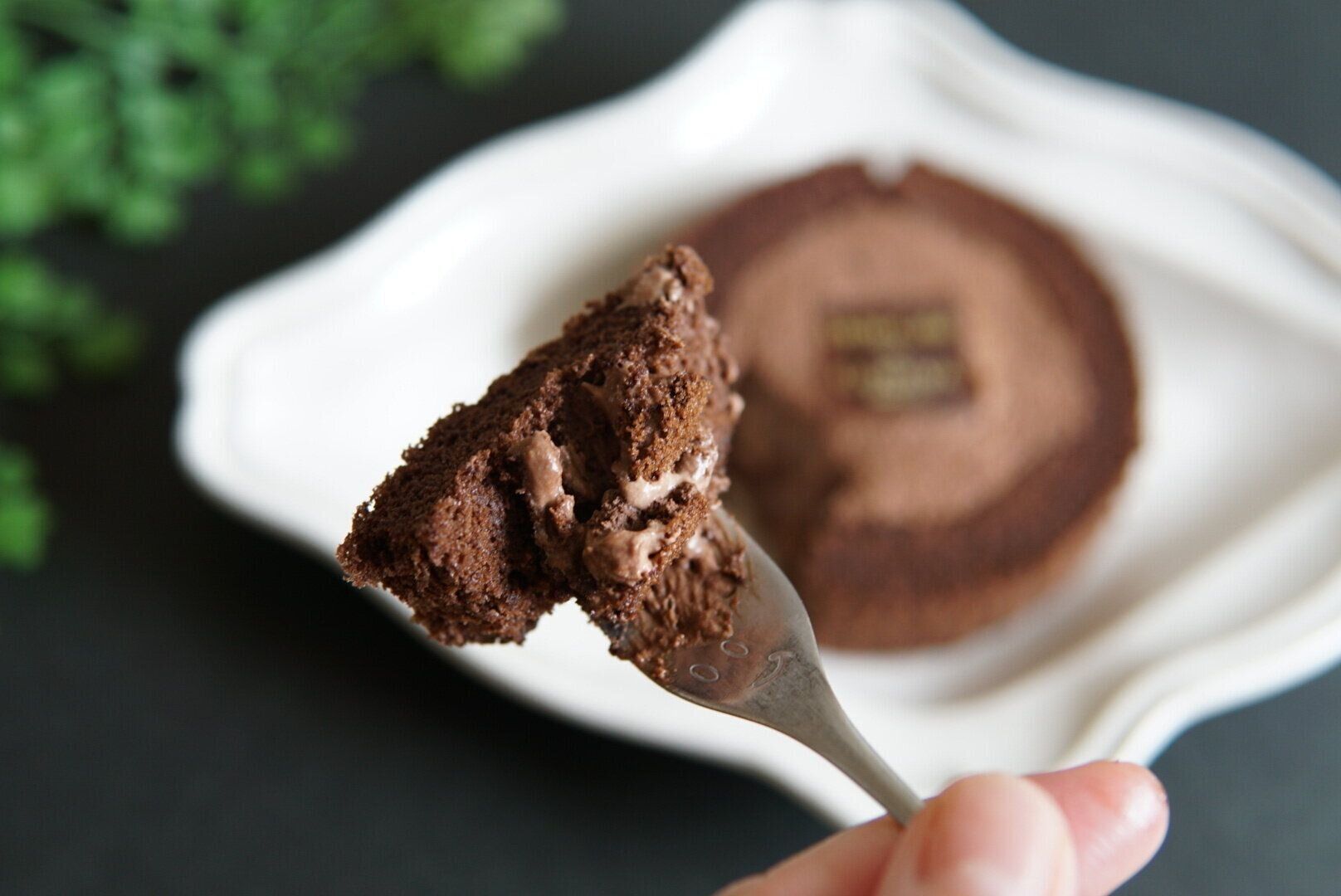 ふんわりトロッとした感じのチョコレートクリームとは真逆な、ザクザクしたクリスピーな食感。見た目はシンプルなチョコロールケーキ。なのに中にそんな驚きを隠してあるなんて!!