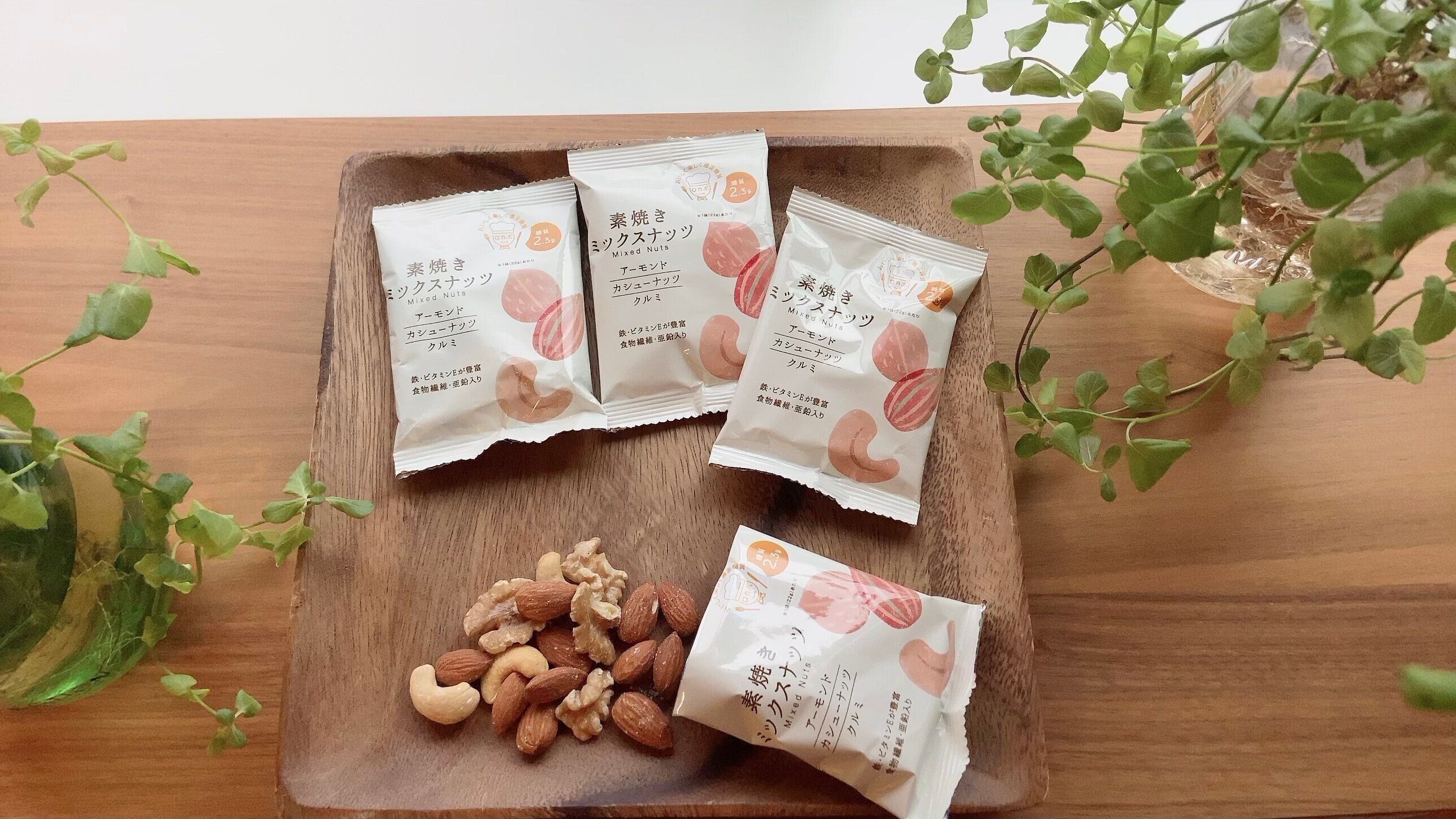 食塩・植物油不使用で、アーモンド、カシューナッツは素焼き、クルミは生のまま袋詰めされています。ロカボにも適しているため、小腹が空いた時やおやつとしてもナッツは良いと思います。