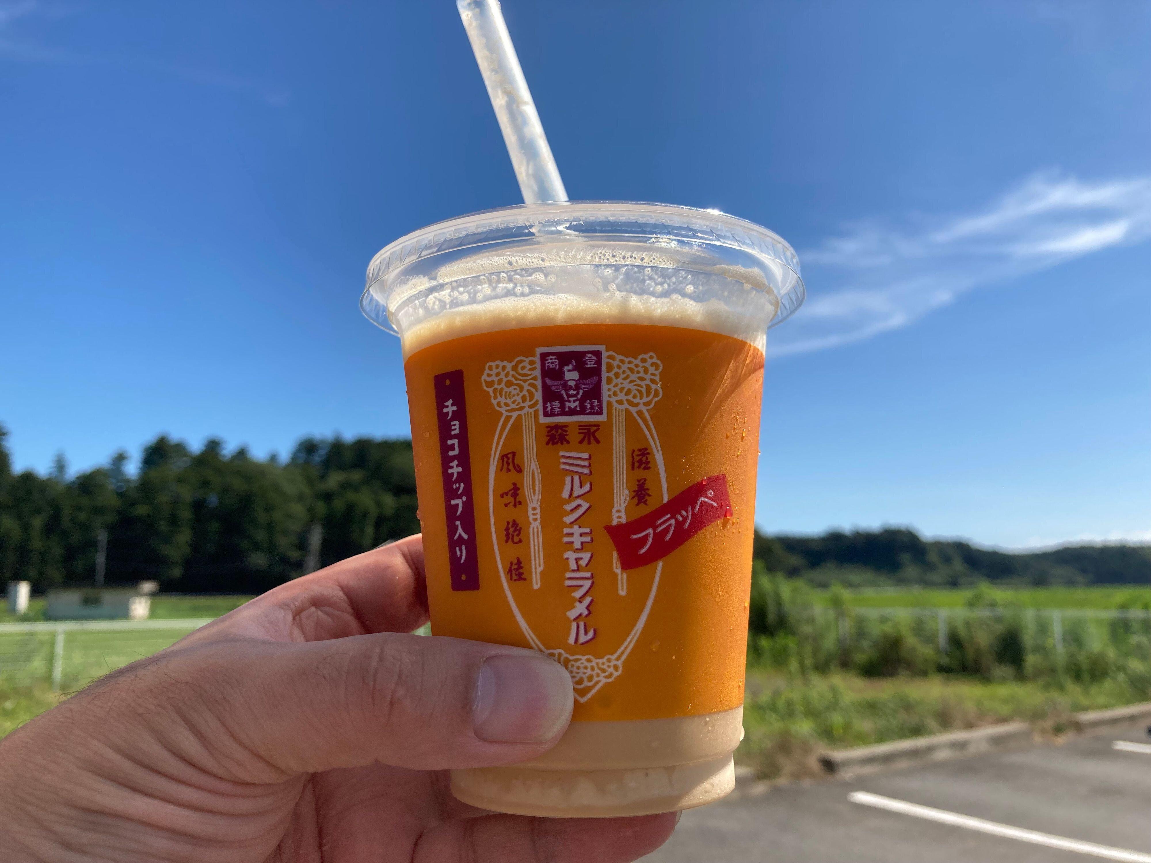 今回ご紹介する商品は、7月17日(土)に新発売された「森永ミルクキャラメルフラッペ」です。1杯320円(税込)。