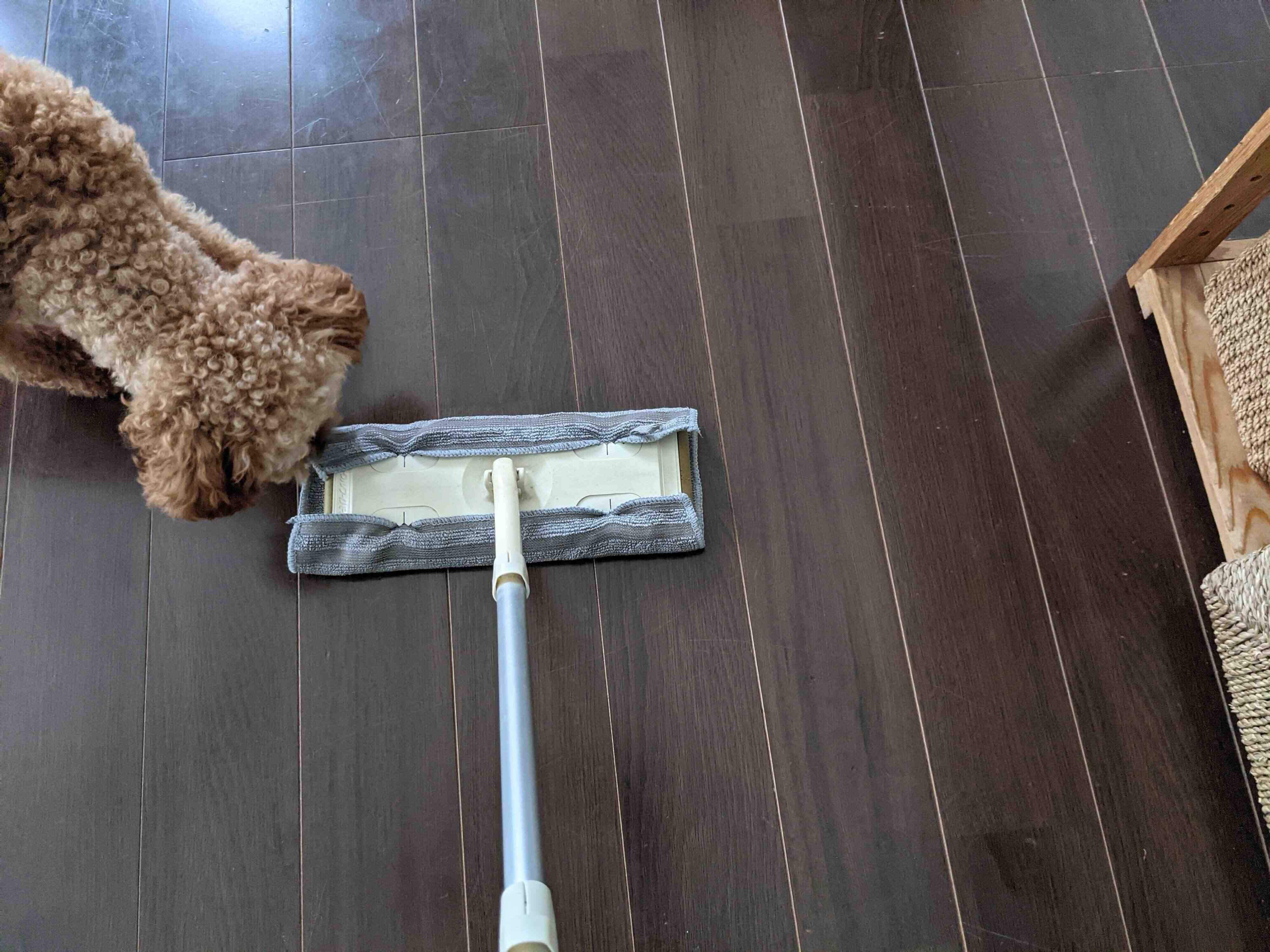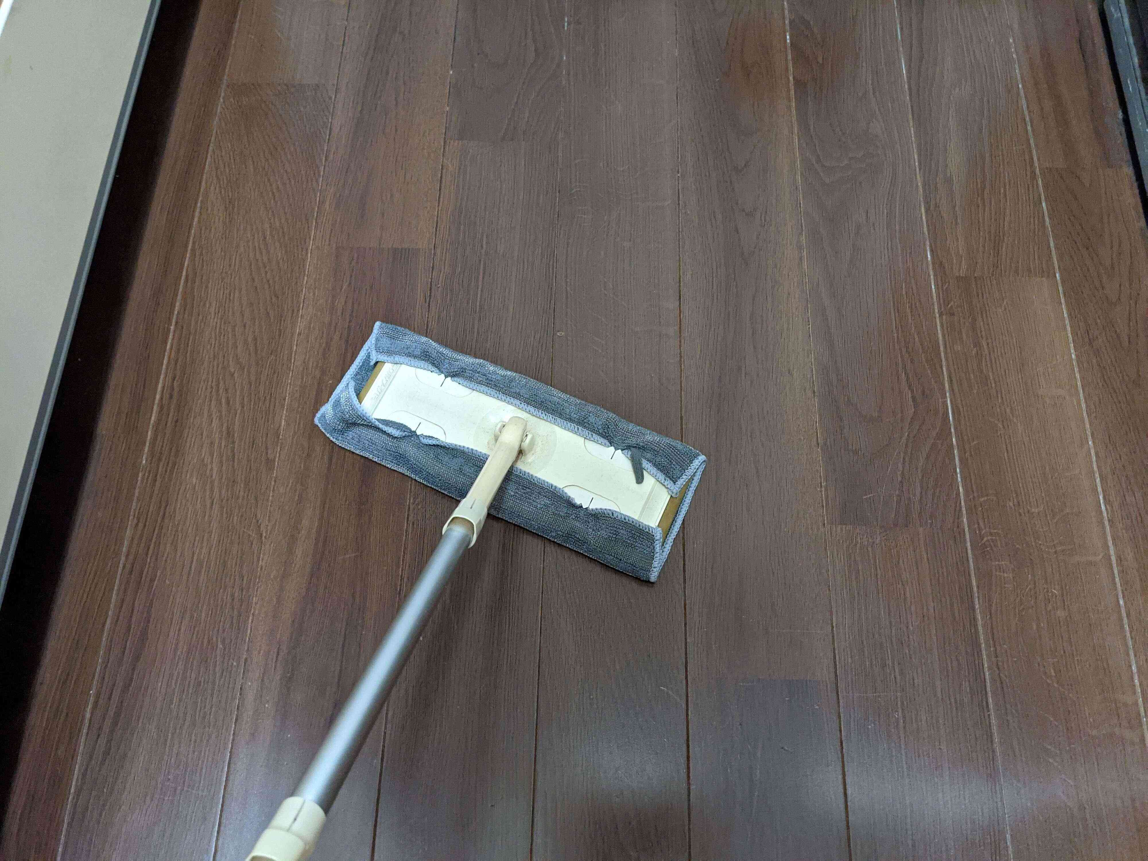 床拭きは膝をついてヒーヒー言いながらやっていたのですが、ワイパーに装着できるおかげでノンストレスフローリング掃除!