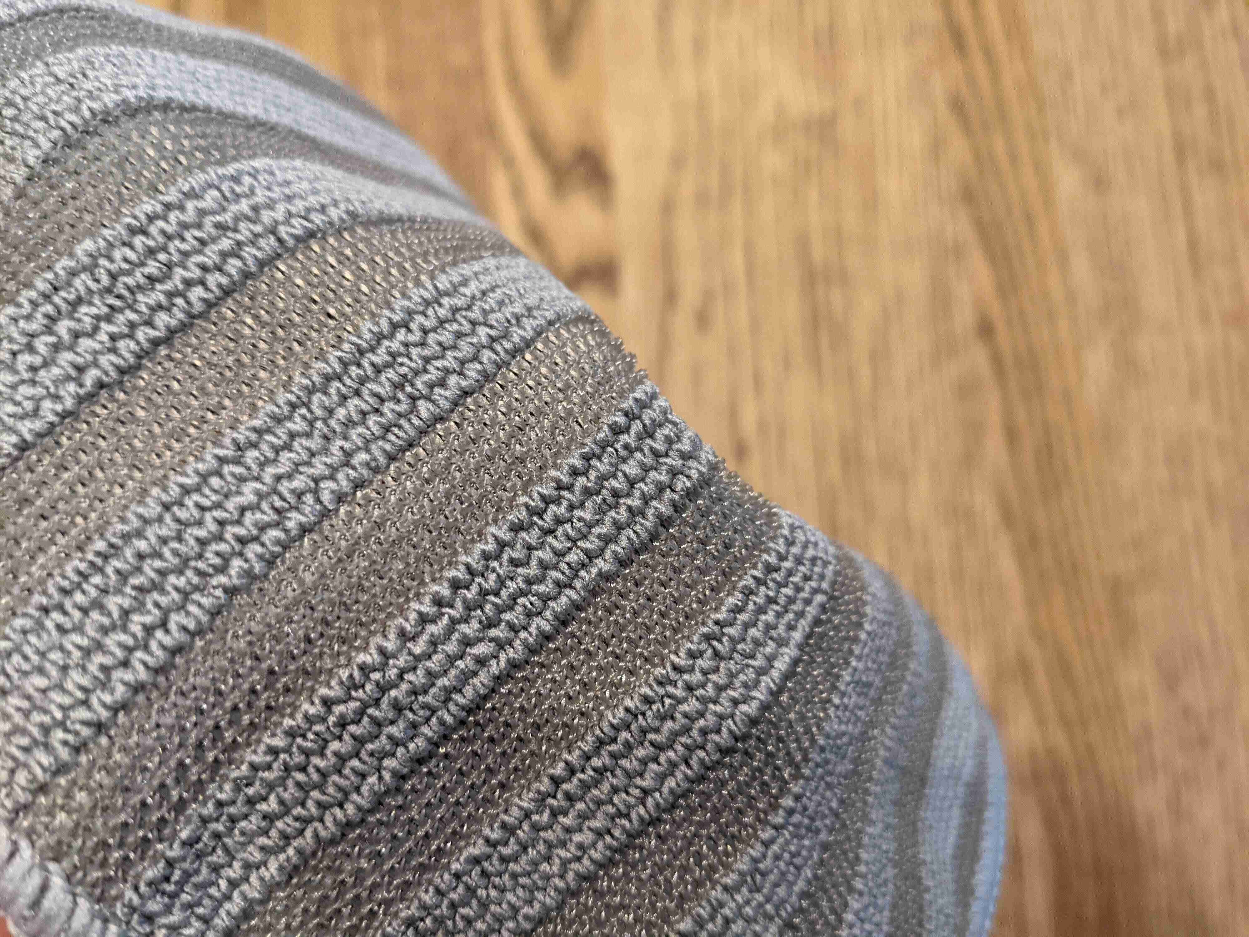 片面はシンプルなマイクロファイバー生地。その裏面は写真のようにストライプ模様の凹凸になっています。