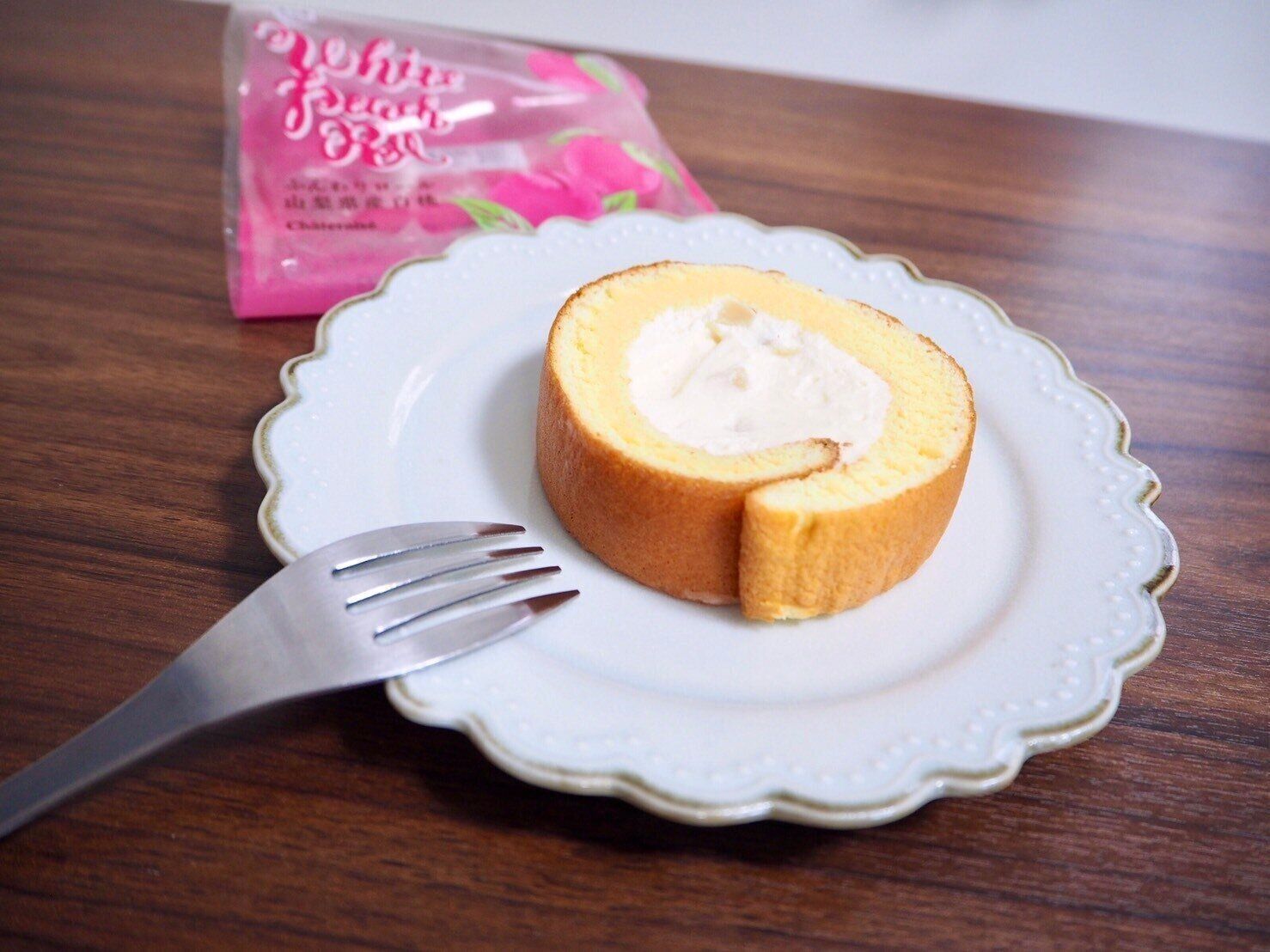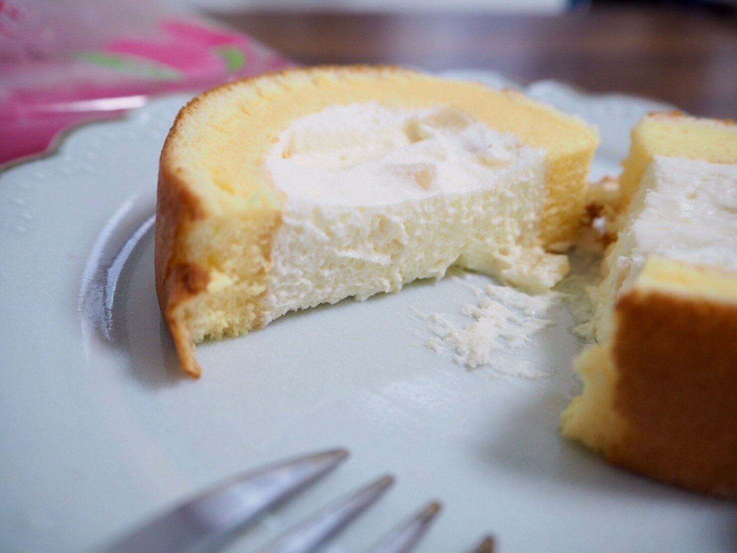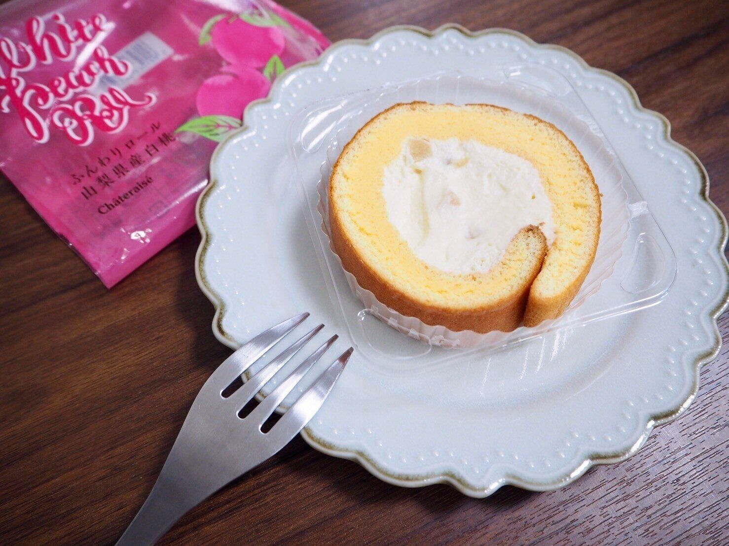 ホイップクリームだと思っていたのはヨーグルト風味のクリームで、さっぱりとしており桃とロールケーキのどちらとも相性も抜群。