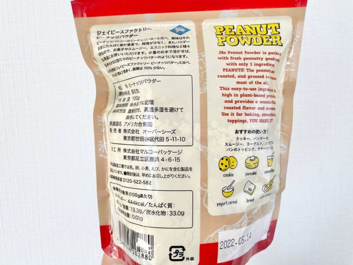 ピーナッツパウダーはピーナッツバターと比べ、風味はそのままに対してたんぱく質が豊富で、脂質が少ないんだそう。健康志向のかたにもぴったり!