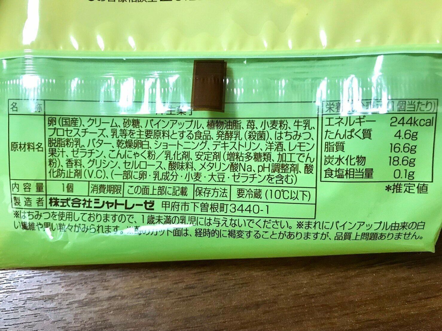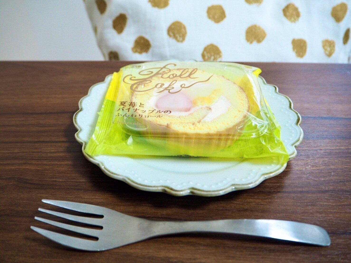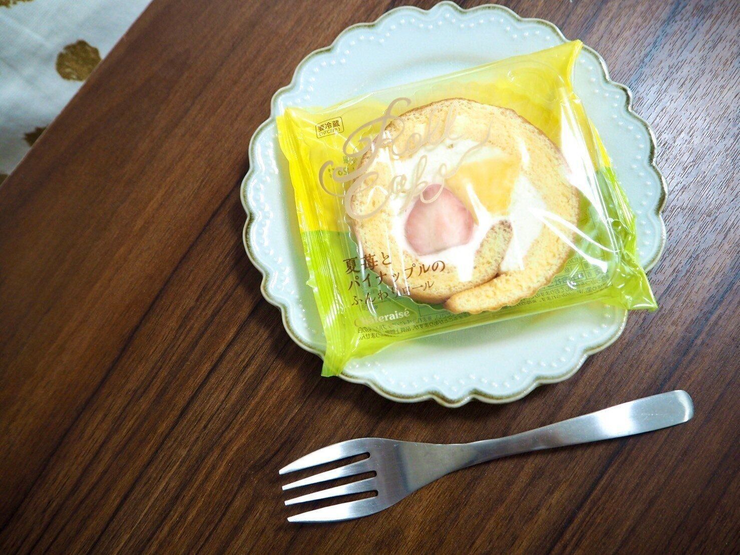 袋から取り出すと、苺とパイナップルの甘酸っぱい香りと、ロールケーキの甘い香りが広がります。