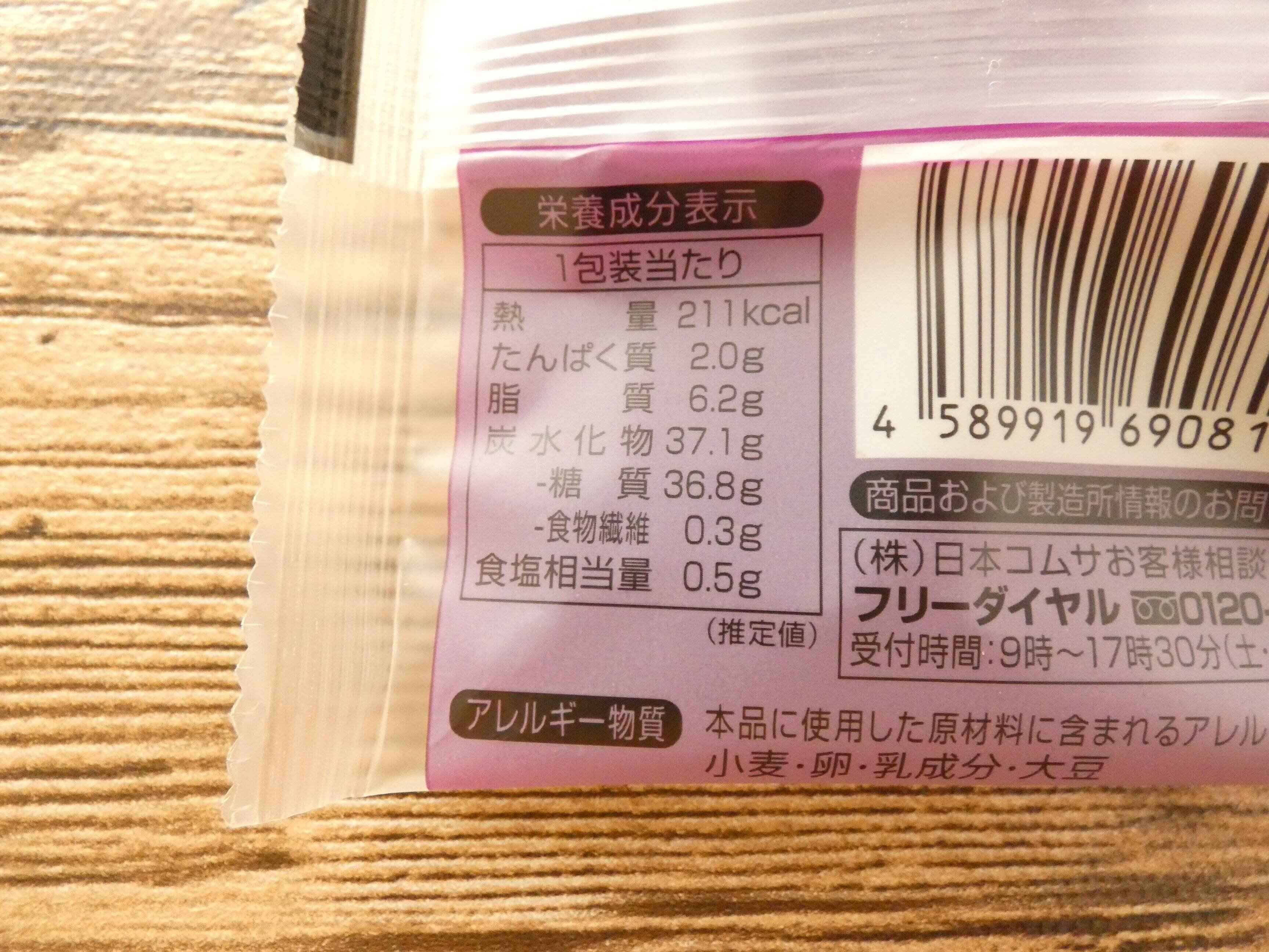 栄養成分表示を見ると1個のエネルギーは211kcalです。