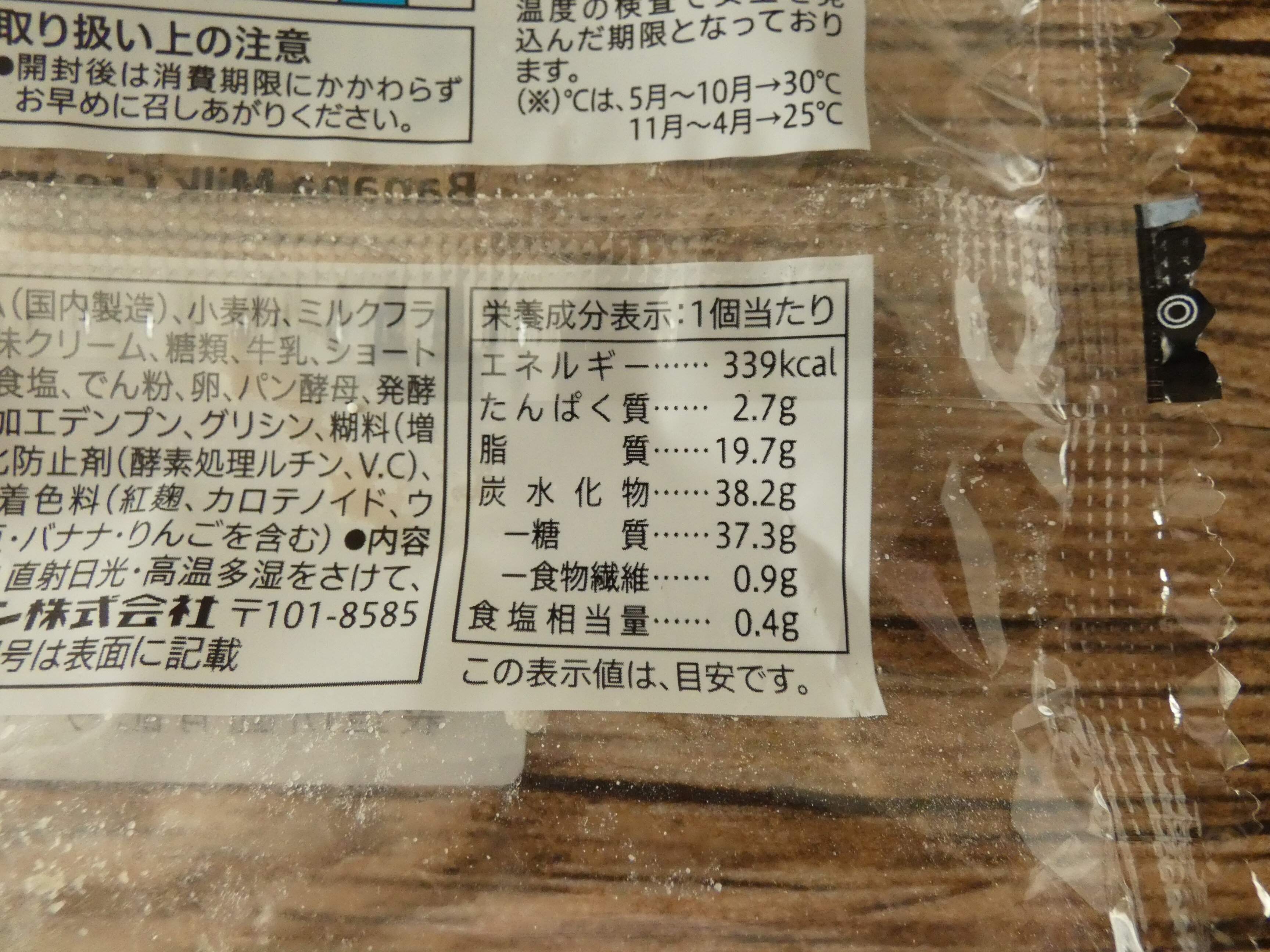 栄養成分表示を見ると1個のエネルギーは339kcalです。パイなので、予想通りのカロリーの高さです。
