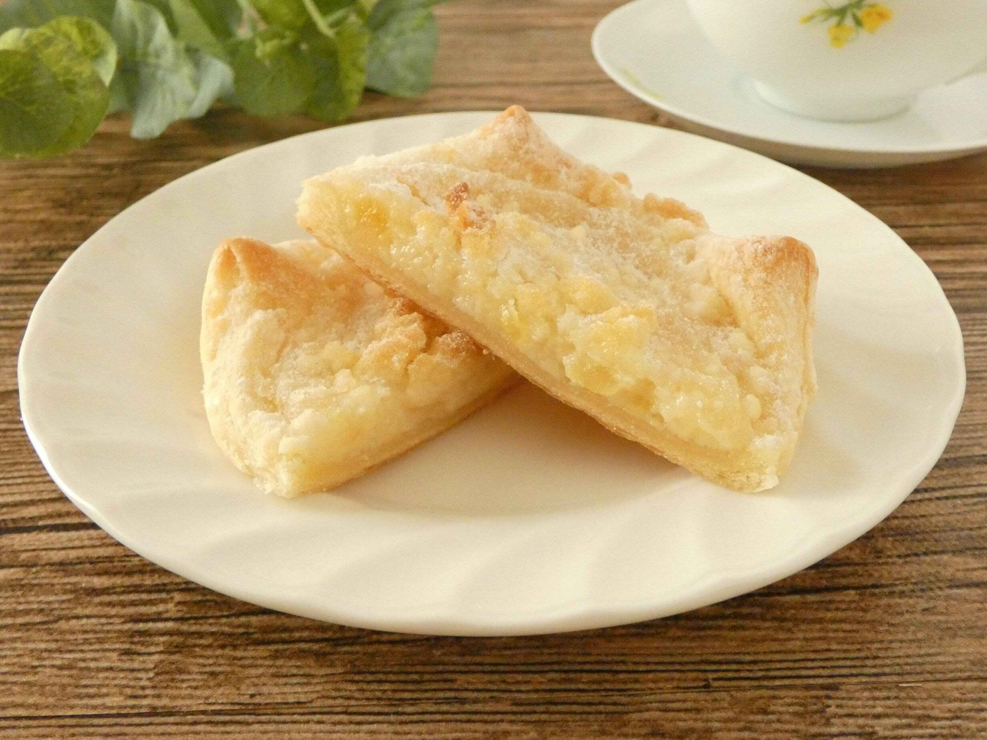 開けるとふわっとバナナの香りがして、パイ生地の上にバナナミルククリームとクランブルのようなそぼろが乗せてあります。