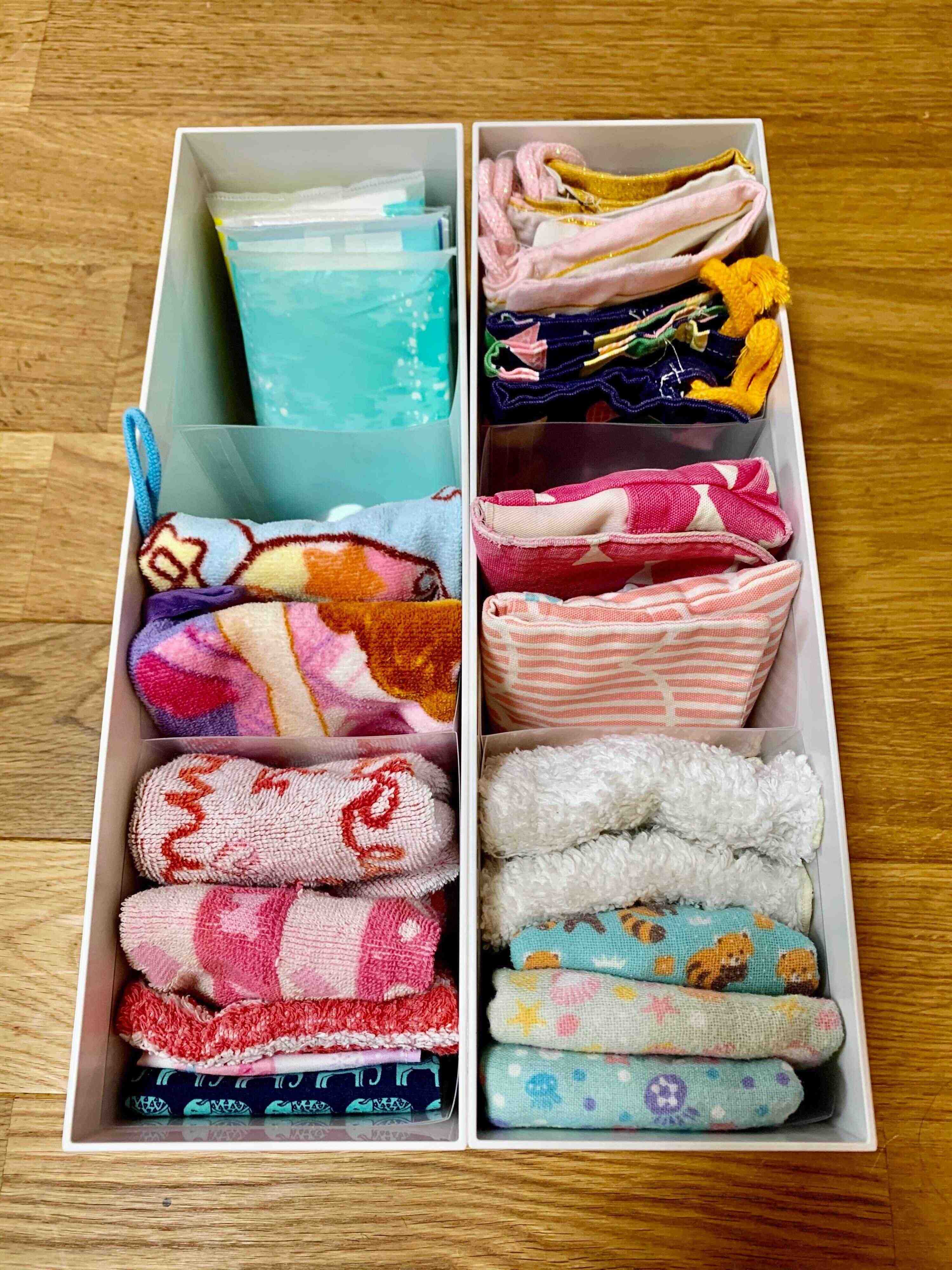 我が家では、あらゆる箇所でこのファイルボックスと、仕切りシートを使用しています。