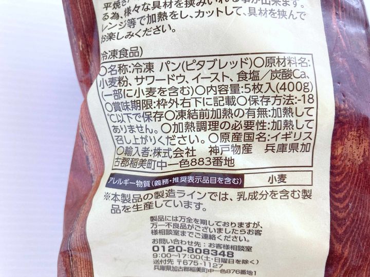 こちらの「ピタブレッド」は400g、5枚入り311円。