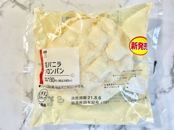 暑い日が続き、夏バテになるのではないかという心配をよそに食欲だけはあるので困っています。ローソンへ行くとベーカリーコーナーで8月3日(火)に発売された「塩バニラメロンパン」を発見。