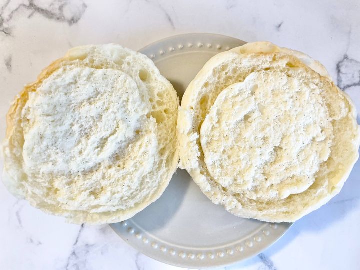 生クリーム、牛乳を配合したミルク風味の生地に、バニラオイルで香りをつけたクッキー生地をかぶせ、塩バニラホイップをサンドしたメロンパンです。