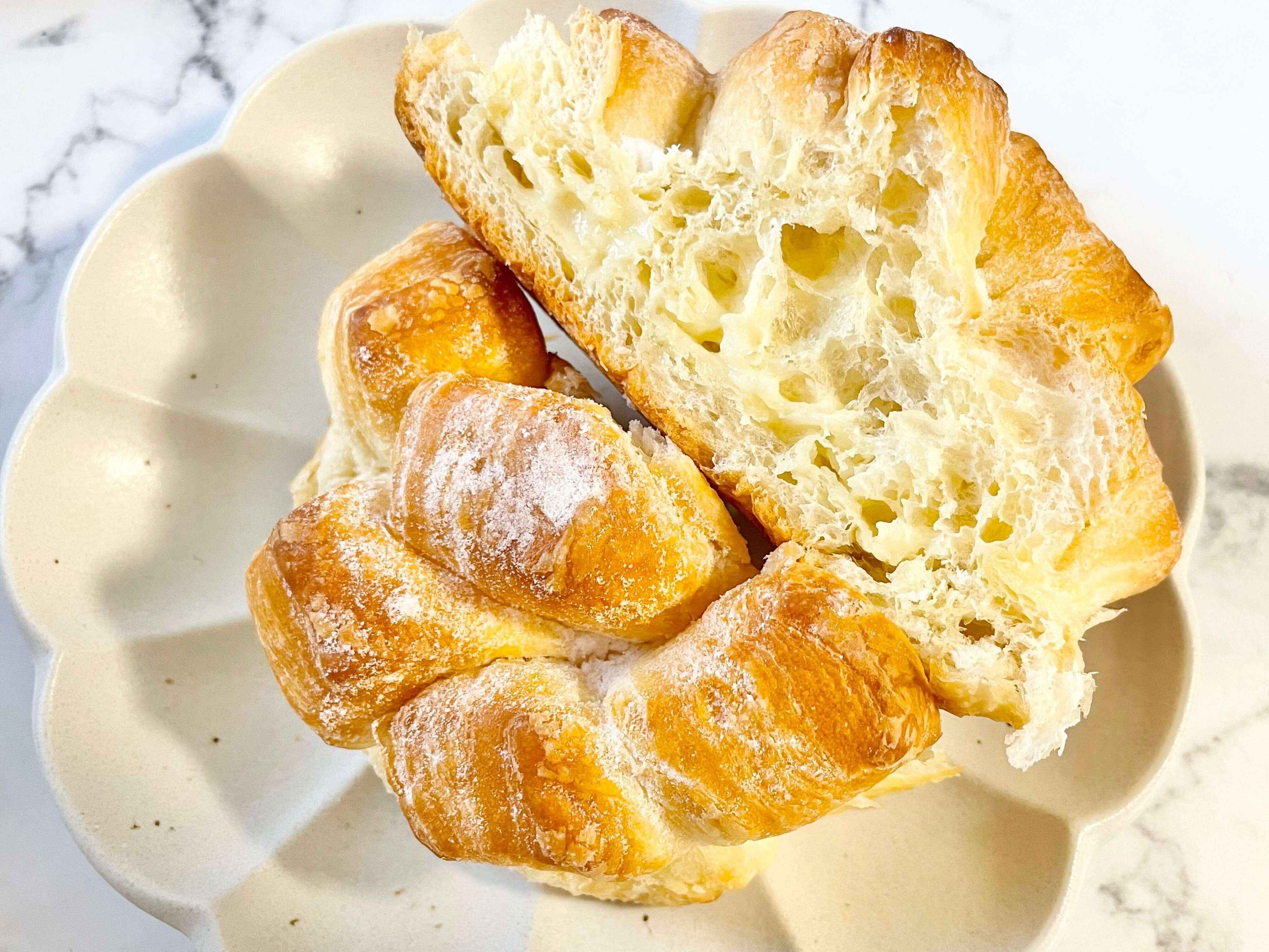 半分はトースターすると表面がサクっとして中はしっとりという2つの食感が楽しめます。