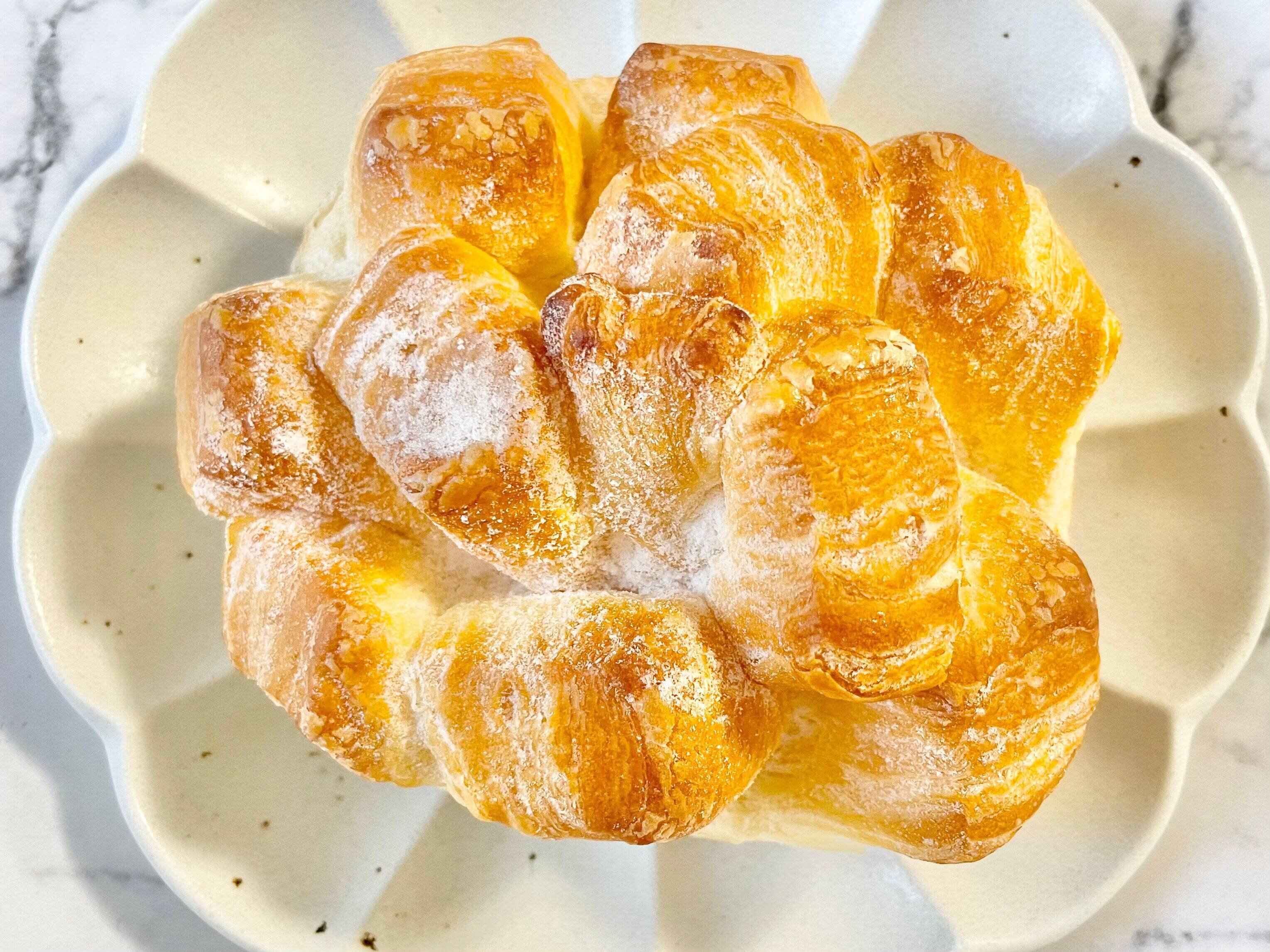 ちぎりながら楽しめます。トッピングされた粉糖が舞うので注意しましょう。