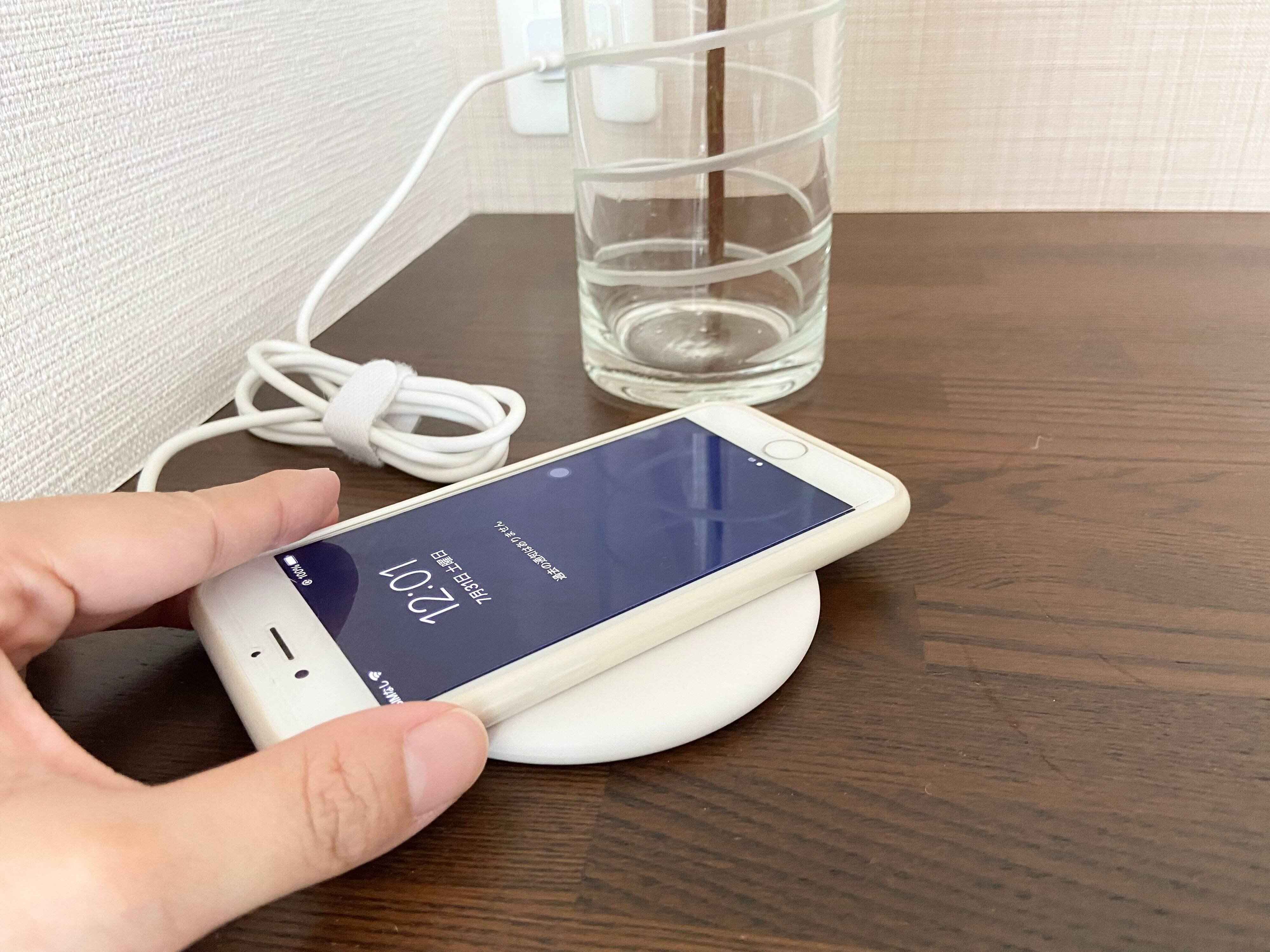 寝る前スマホを充電する時にライトニングケーブルを挿すのが地味に面倒だったりしませんか?ちょうど手持ちのケーブルの調子もよくなくて買い直しを検討していたので前々から気になっていたワイヤレス充電器を購入することに!