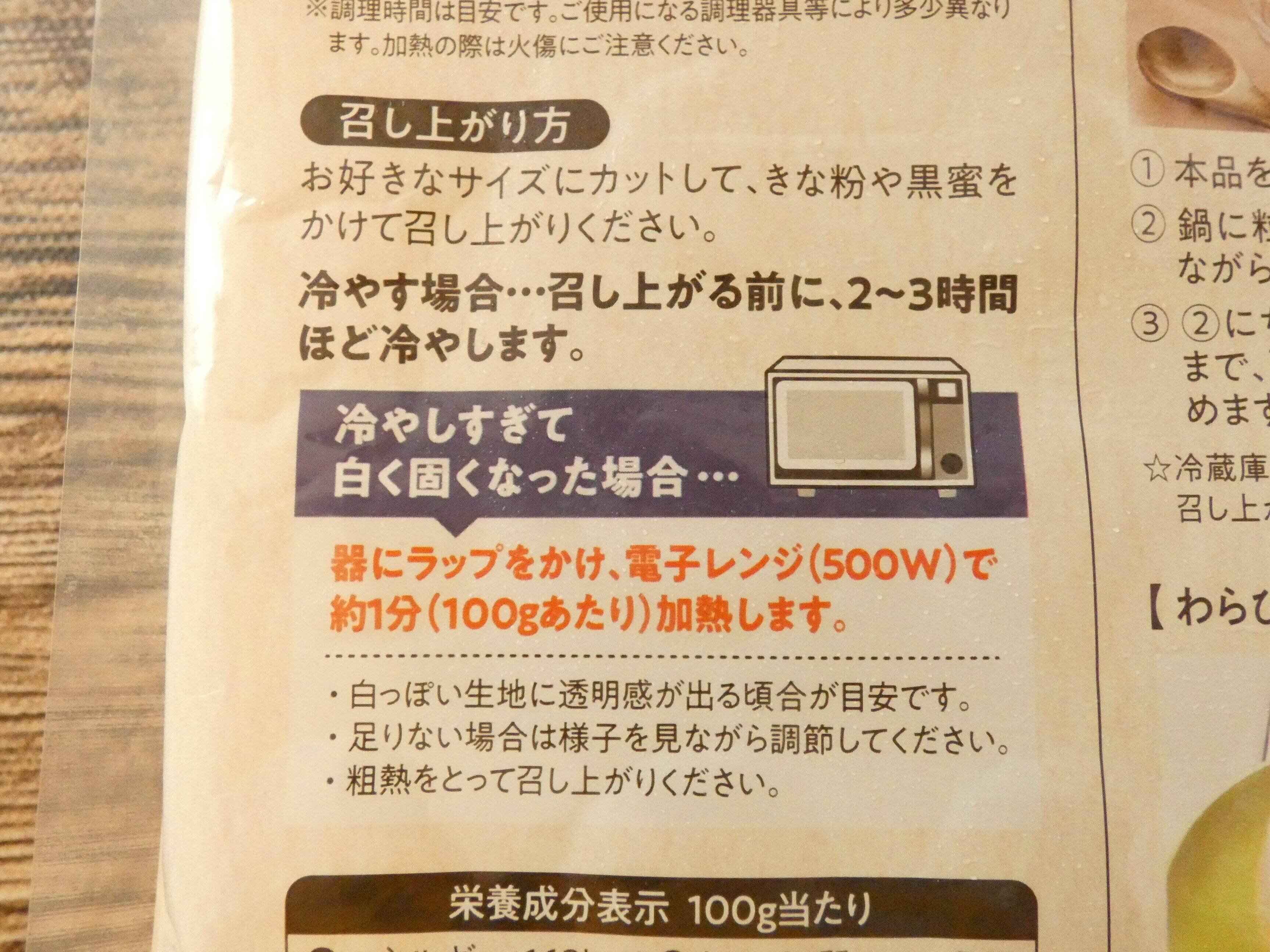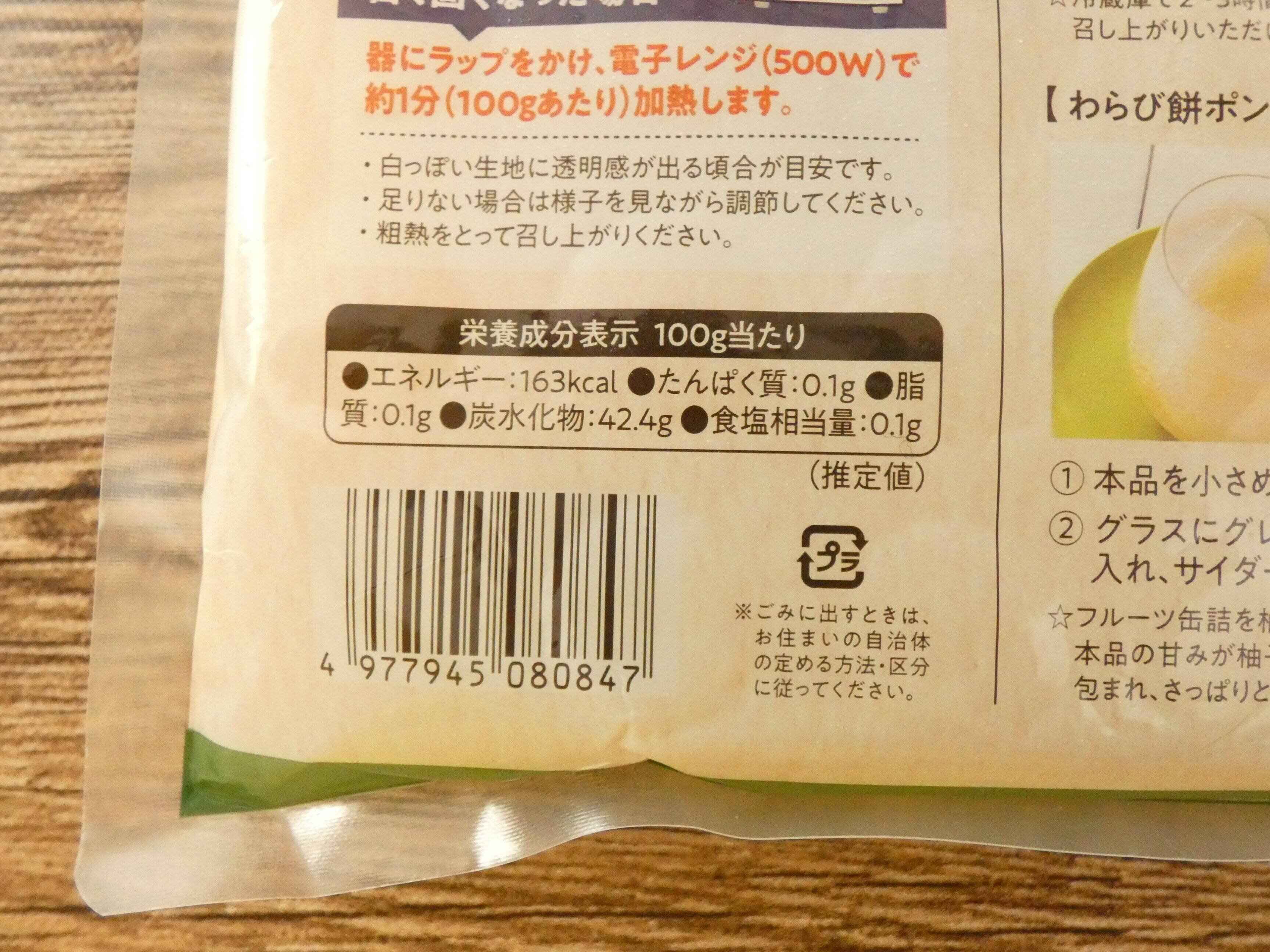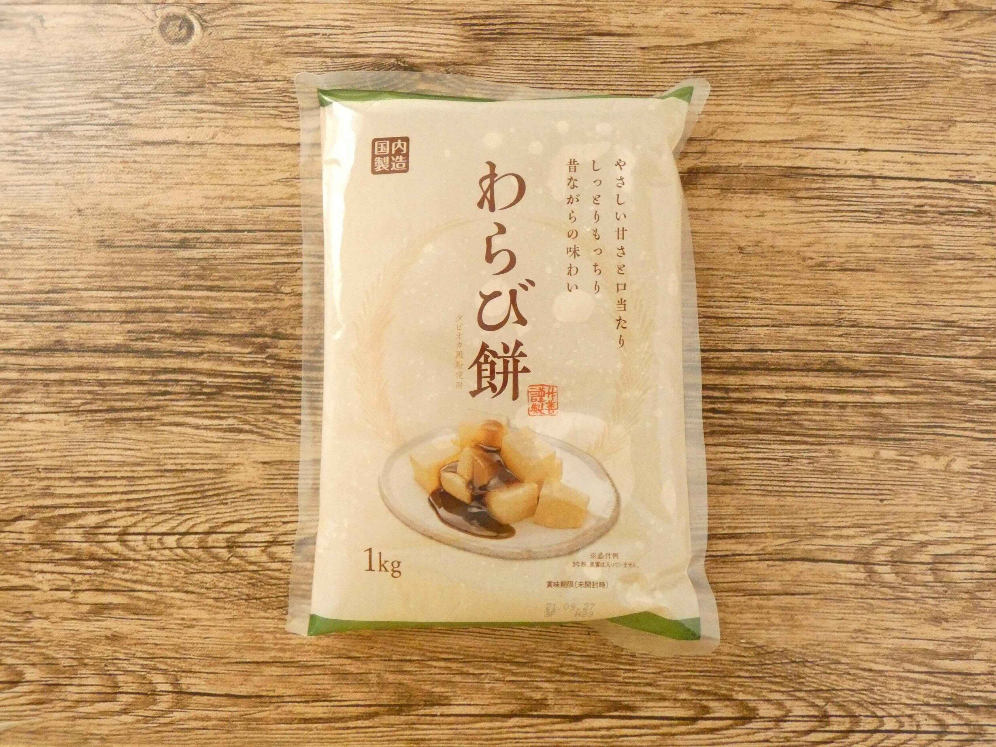 わらび餅は1kg入りで238円。たっぷり入っていてこのお値段はコスパ抜群です。