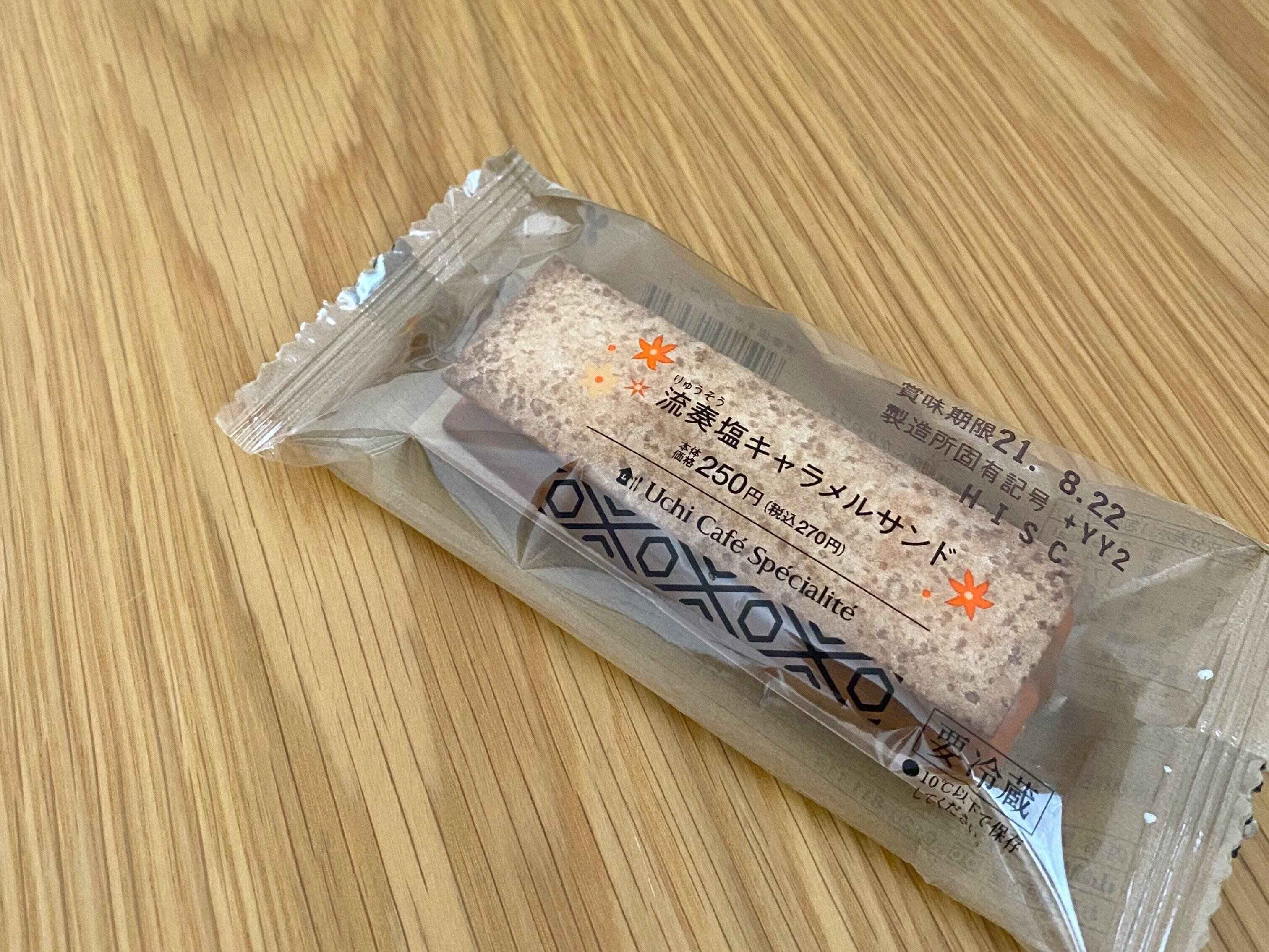 ローソンから新発売された「Uchi Café Spécialité 流奏塩キャラメルサンド」。ホームページの商品情報を見て「おいしそう!」と思い、早速買いに走りました!