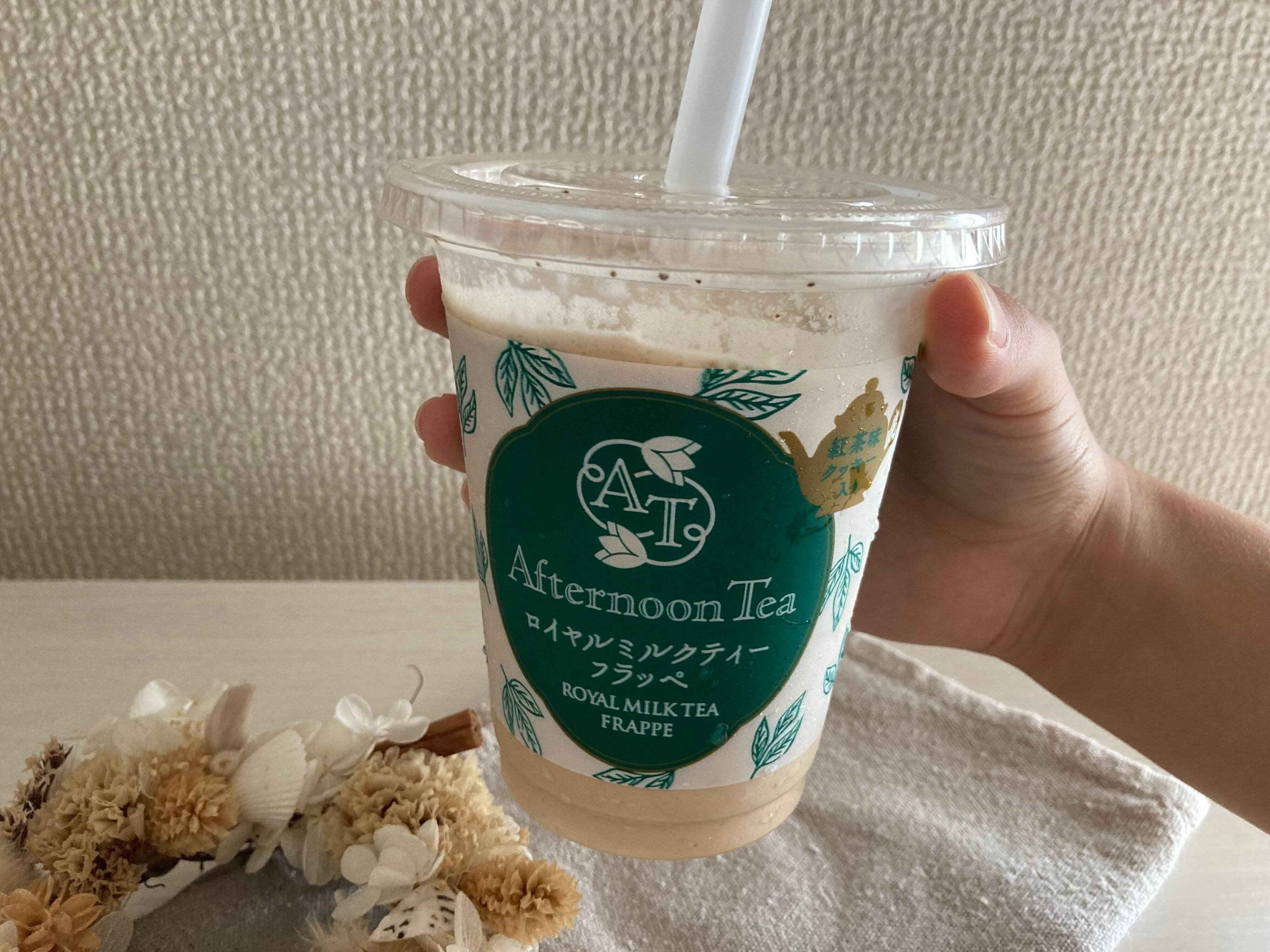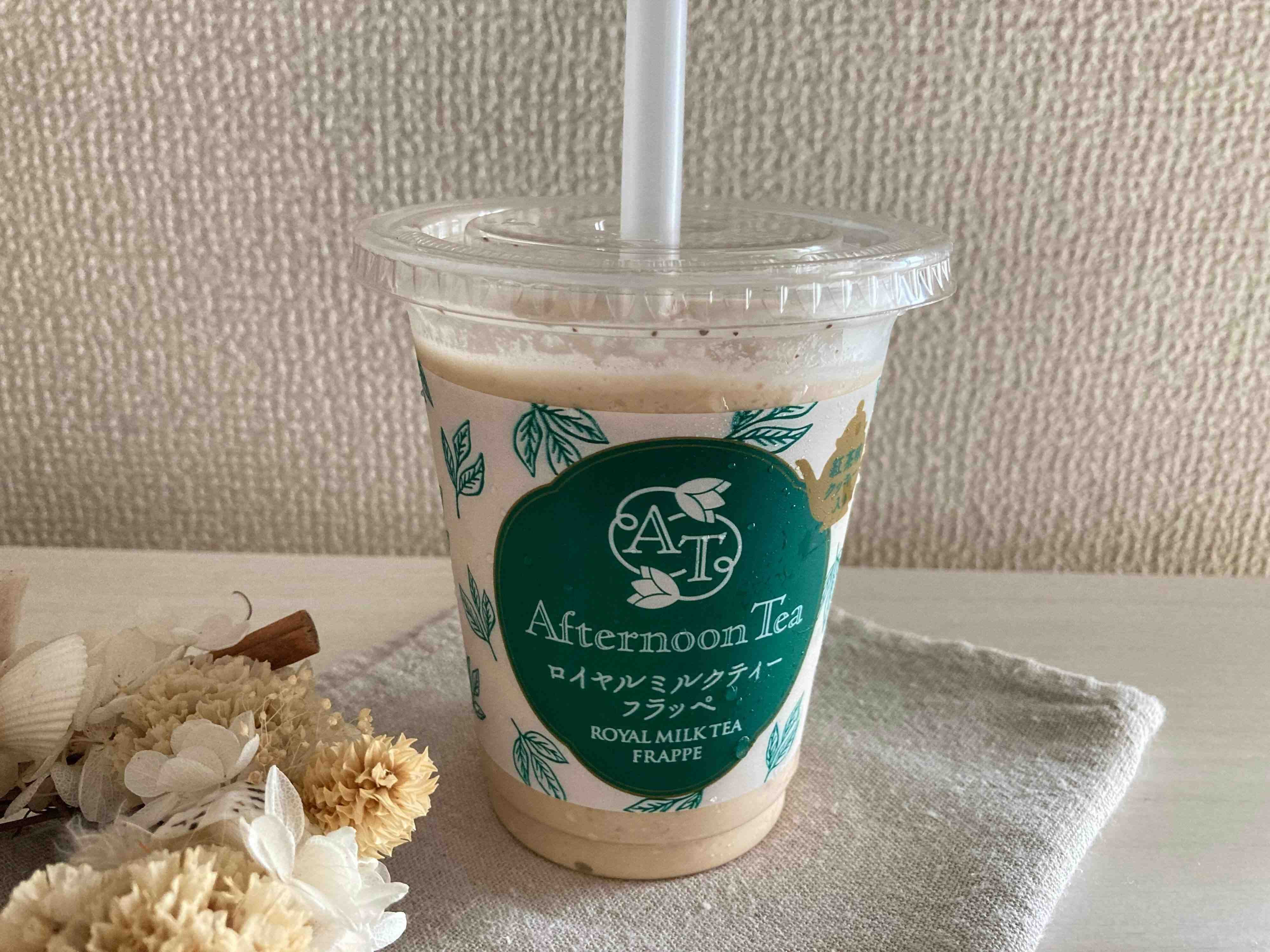ロイヤルミルクティーフラッペは、紅茶専門店の「Afternoon Tea」監修のもと開発された商品。本格な味わいを再現するために、ミルクティーにピッタリな茶葉が使用されています。