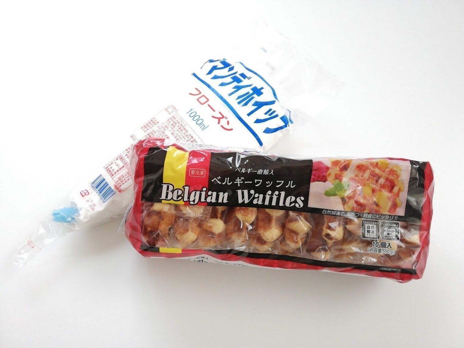 「ベルギーワッフル(10個入り)」と、「アマンディホイップ」は、3人の子どもたちのおやつにぴったり。