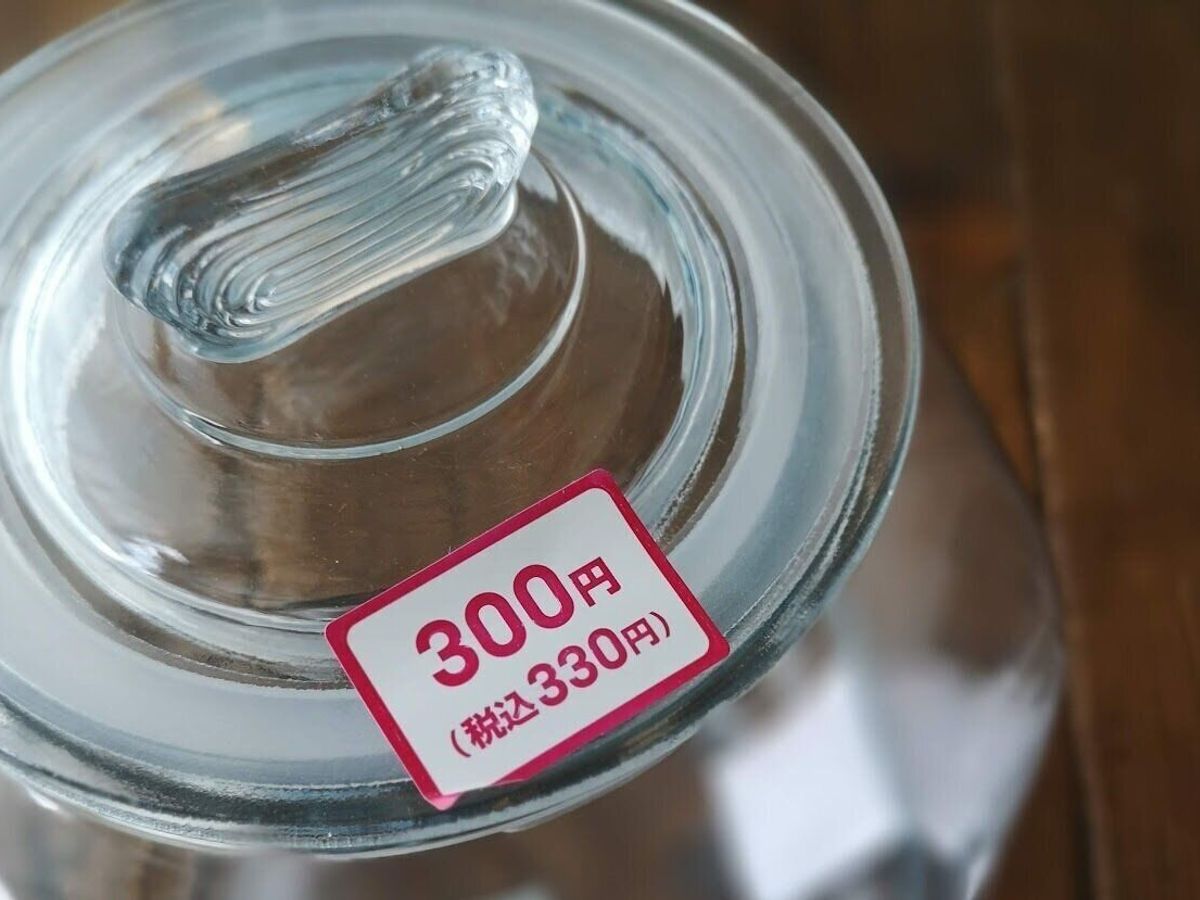 これだけの大きさがあって、ガラス製となれば、雑貨屋さんなどでも330円では買えません!