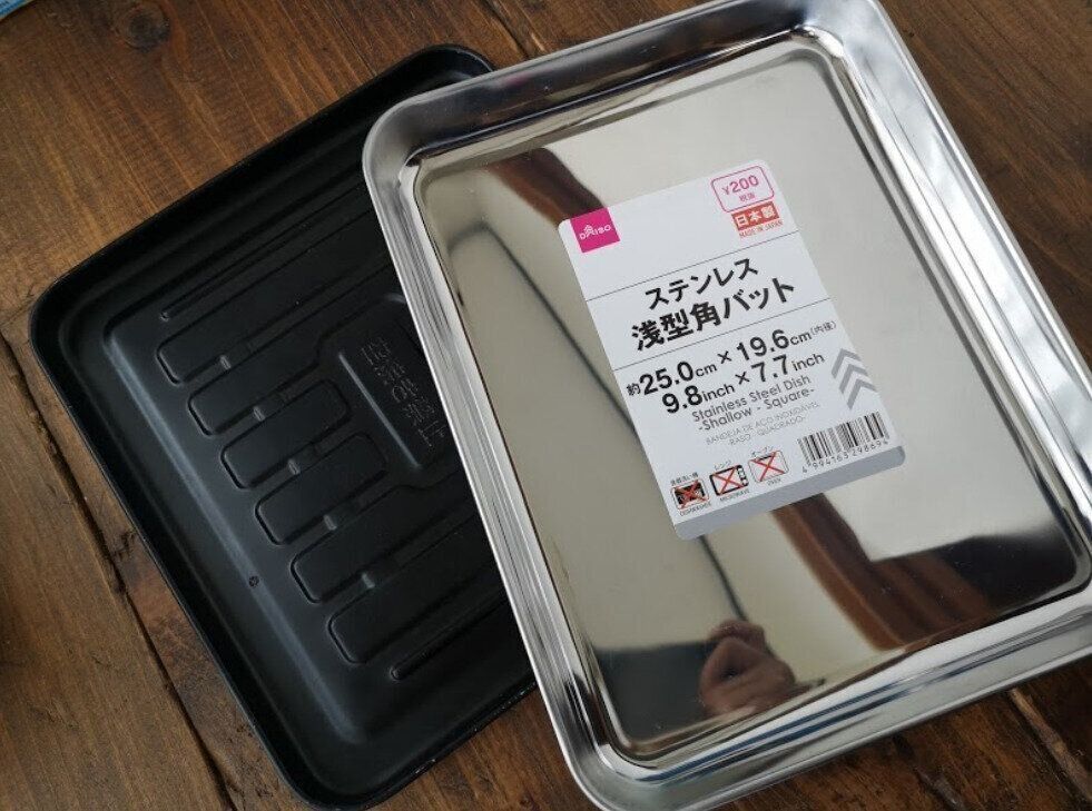右はダイソーの220円商品で、左はトースターに付属された天板です。