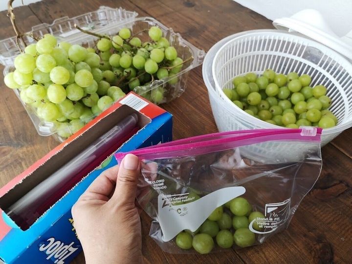 コストコの皮のまま食べられるシードレスグレープを洗って水をきってコロコロ詰めて冷凍すれば、一個一個バラバラに冷凍できるので、アイス感覚で食べるのに最適!