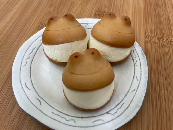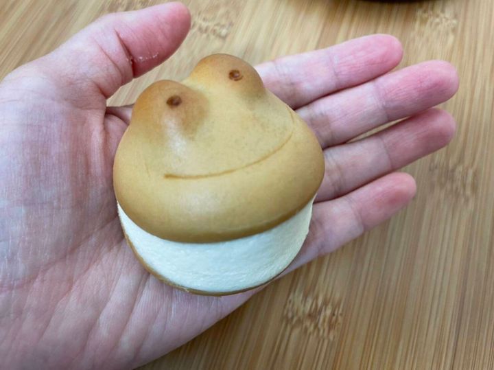 まずこの見た目のかわいさ!かえるが口を開けていてその中にたくさーんのクリームが。かわいすぎて食べられないですよね!