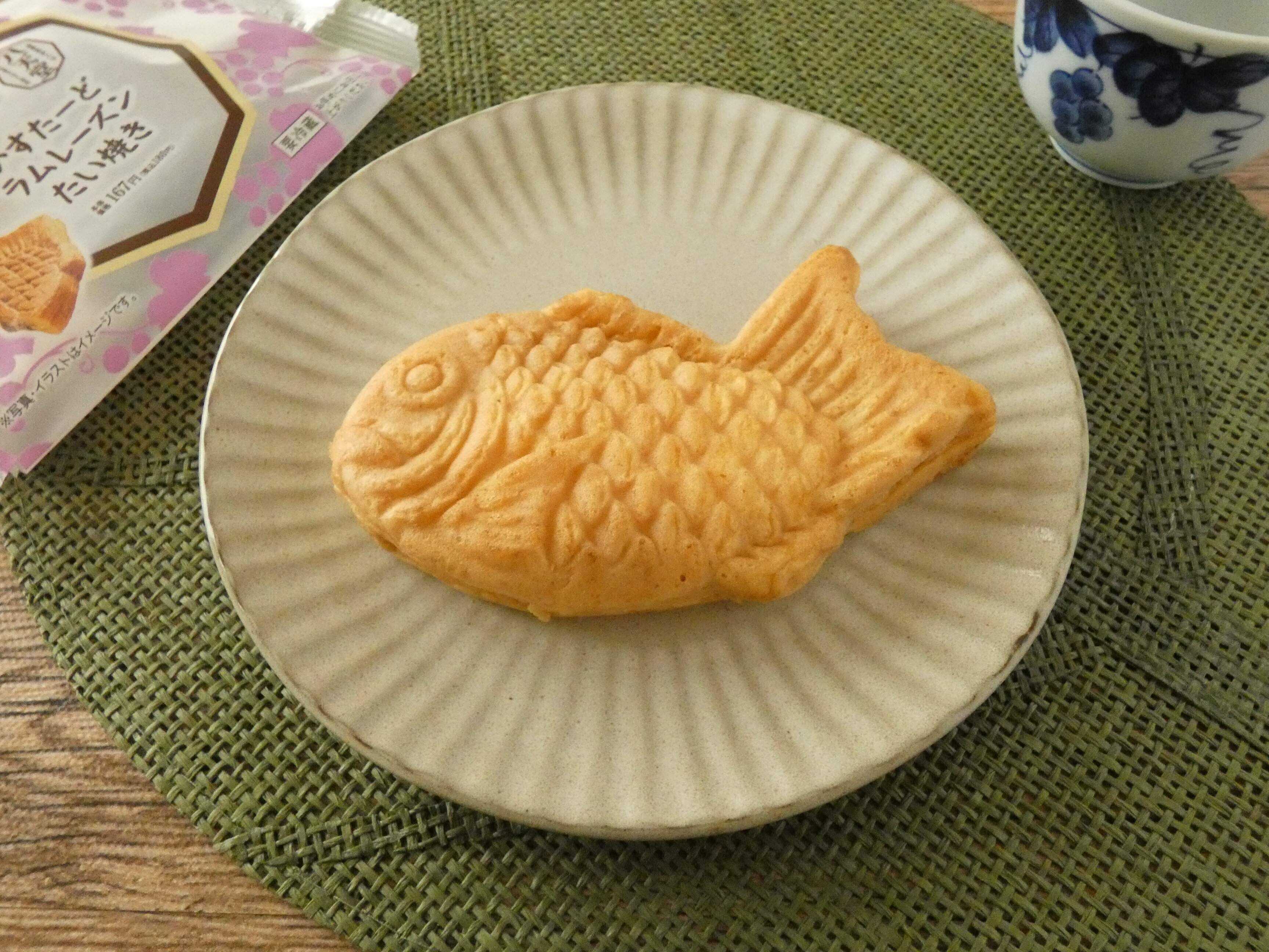 ローソンで新発売された「かすたーどラムレーズンたい焼き」は180円。