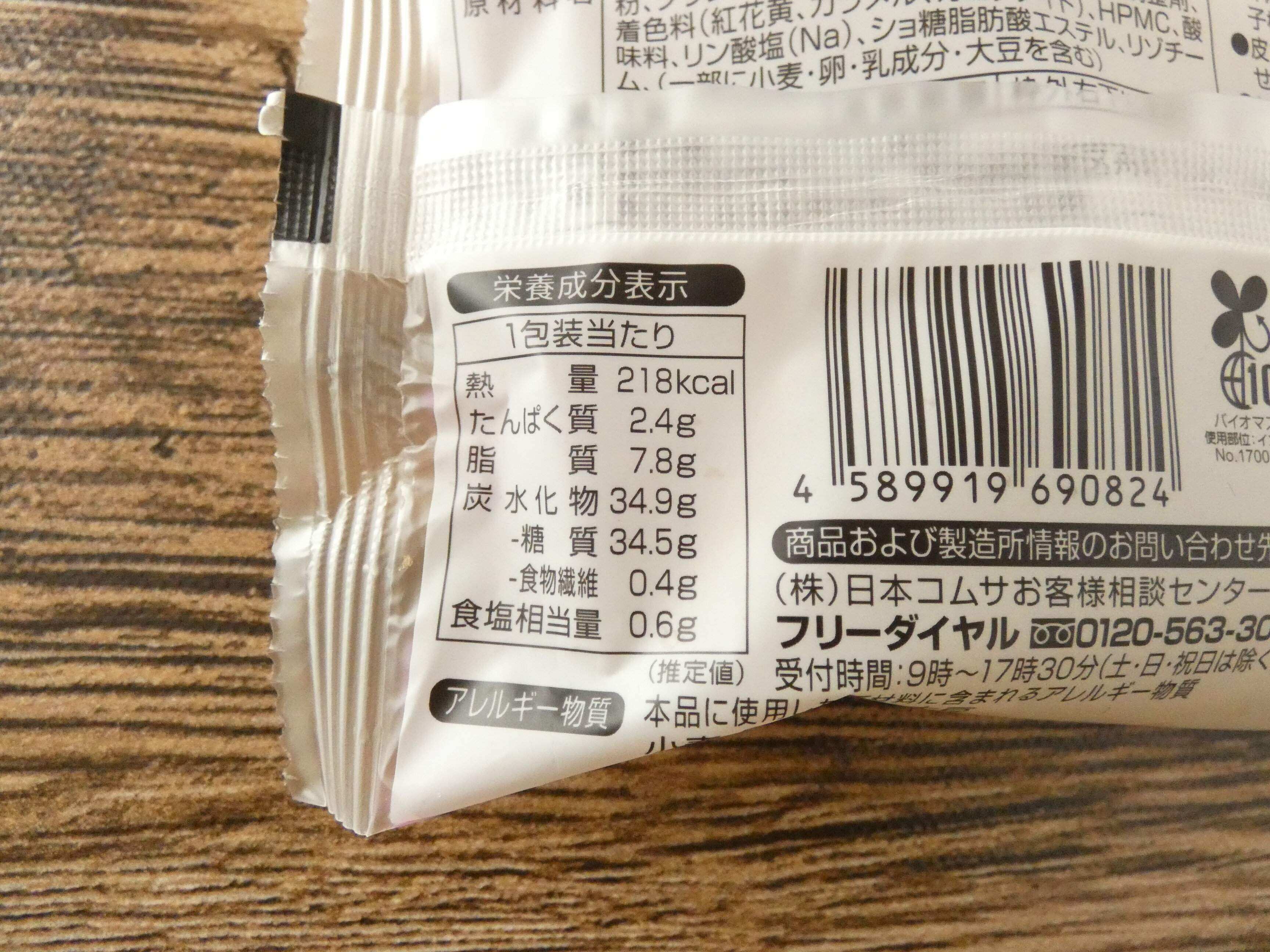 栄養成分表示を見ると1個のエネルギーは218kcal。