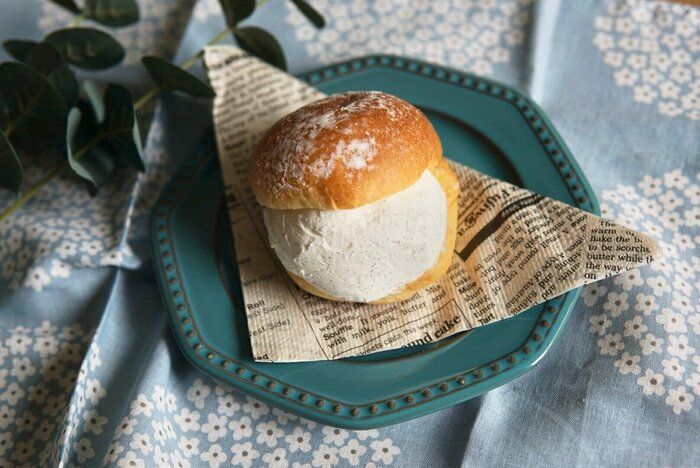 生地はもっちりとしていて厚めで、カットするとカスタードクリームとバタークリームがたっぷり入っています。食べてみると生地はもちもち食感で、ほんのり塩気を感じる優しい甘さです。