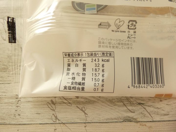栄養成分表示を見ると1個のエネルギーは243kcalです。