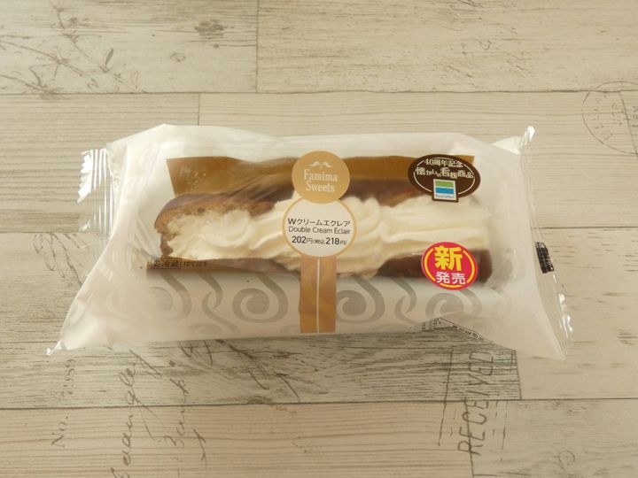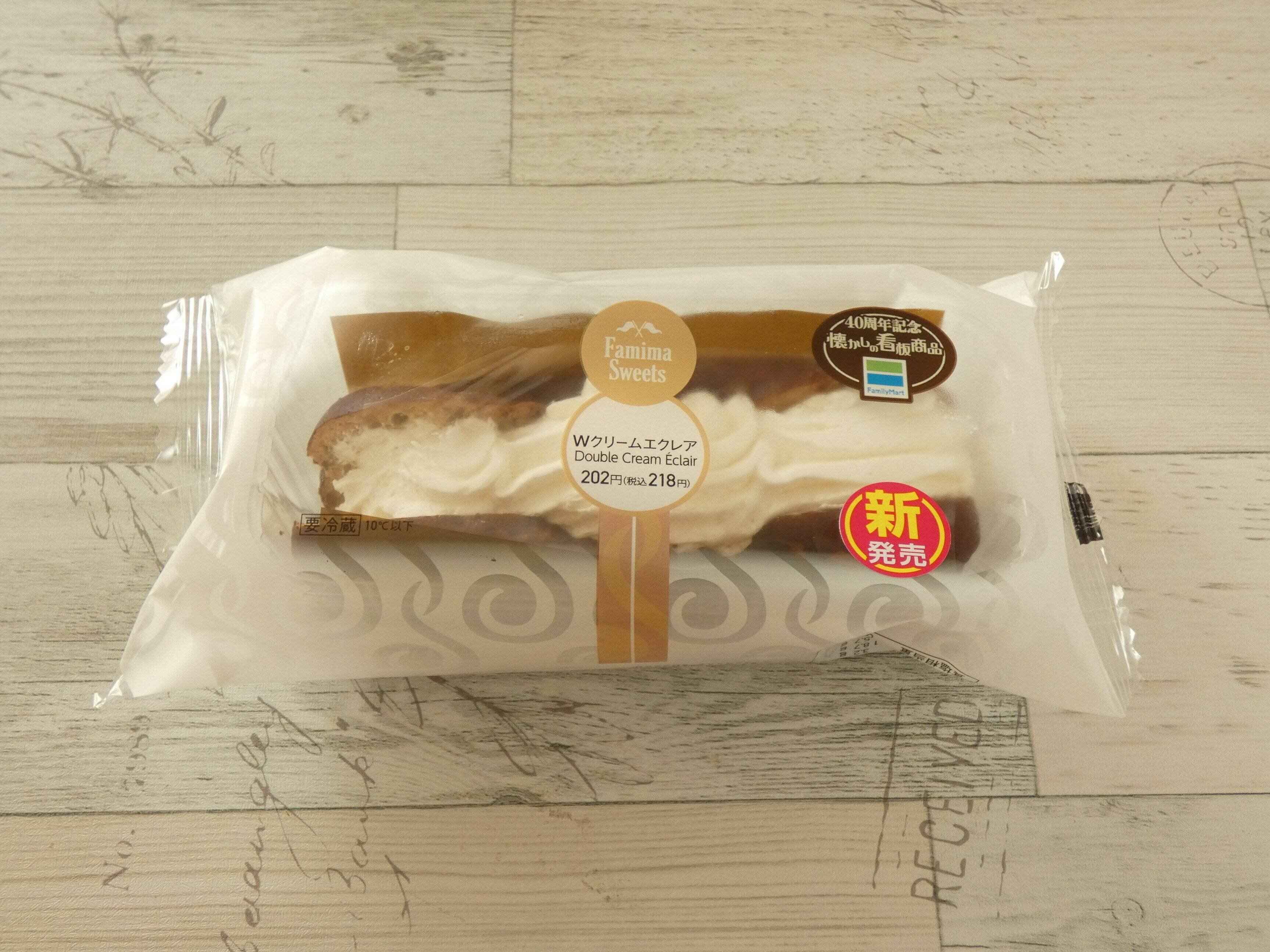 ファミリーマート新発売の「Wクリームエクレア」は218円。2008年に発売となり、テレビでも話題になりました。